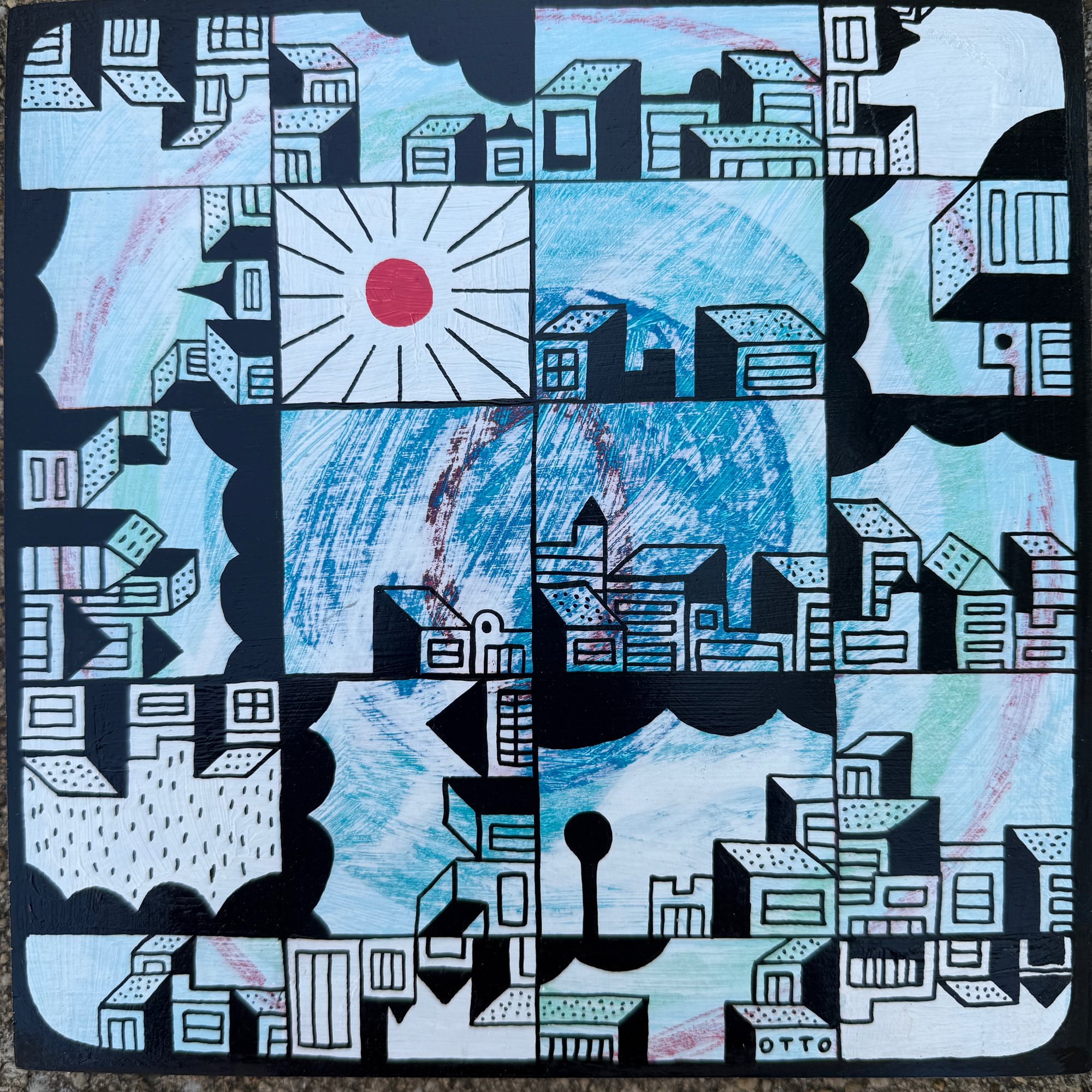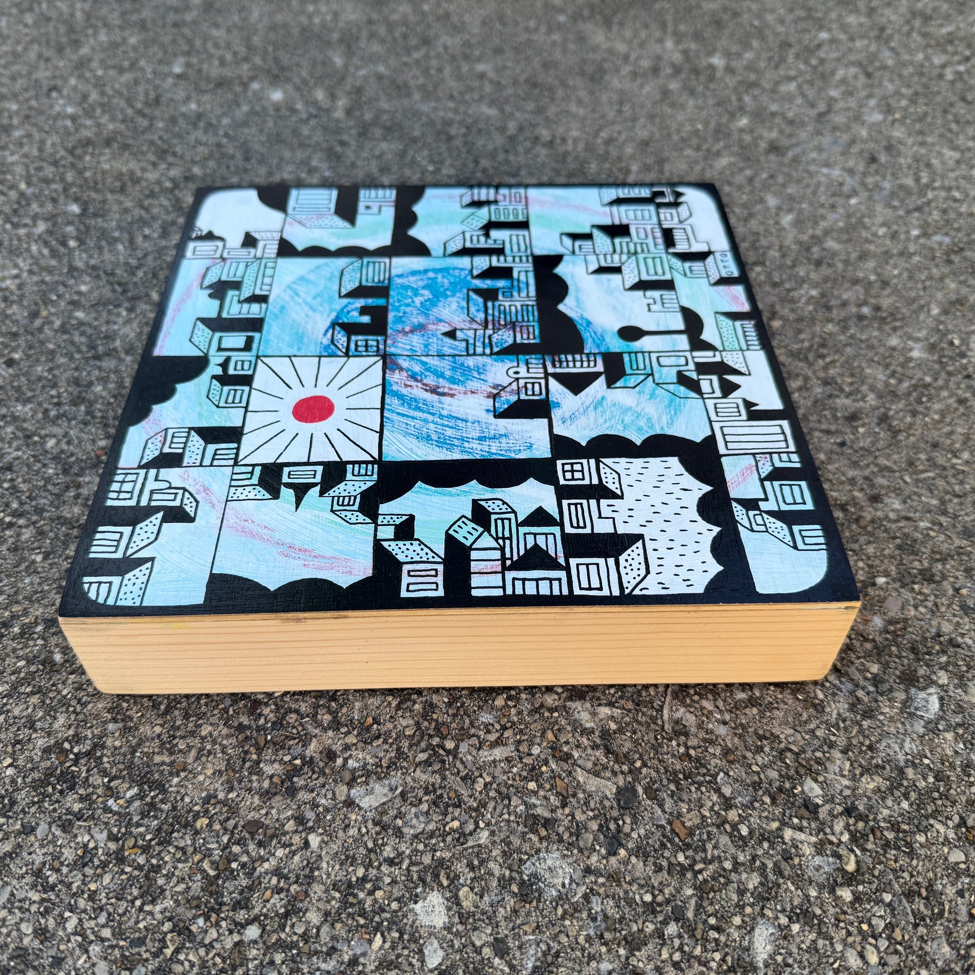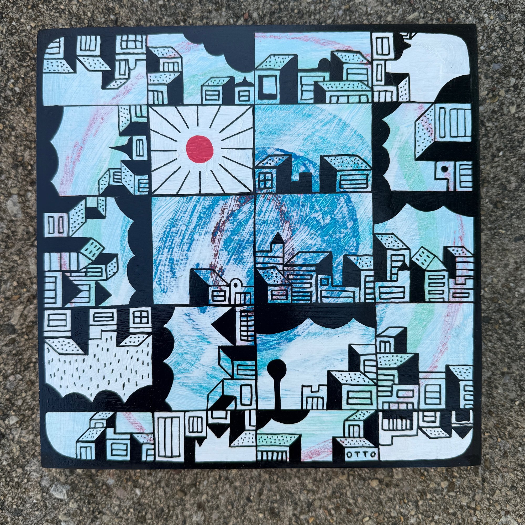 8"x8" wood panel. Acrylic and acrylic ink on wood. Gloss finish. Ready to hang. Ships free.