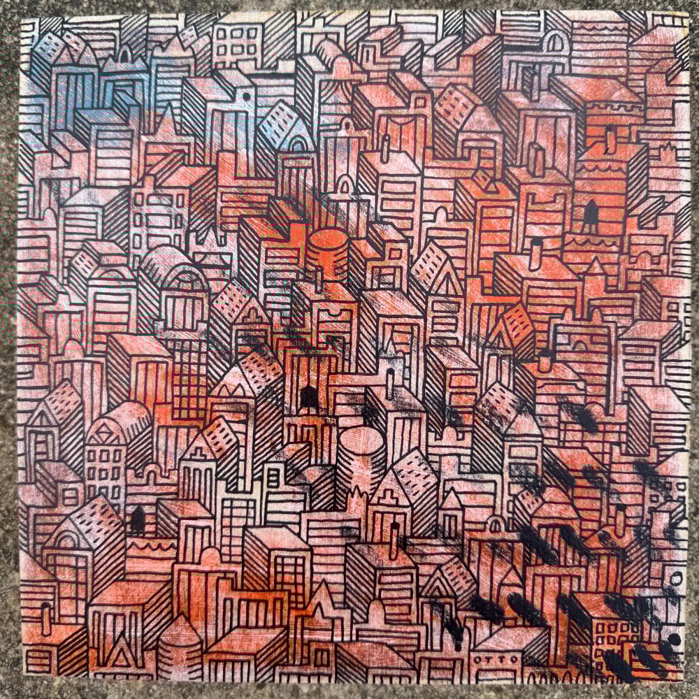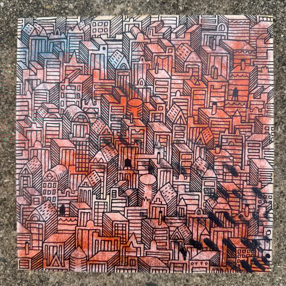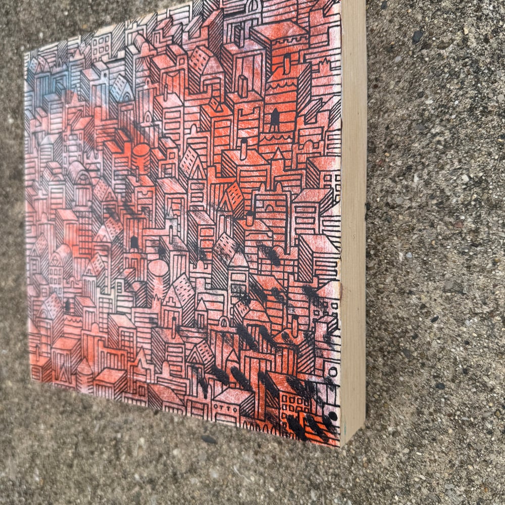 8”x8” wood panel. Acrylic layers sanded and acrylic ink. Gloss finish. Ships free.