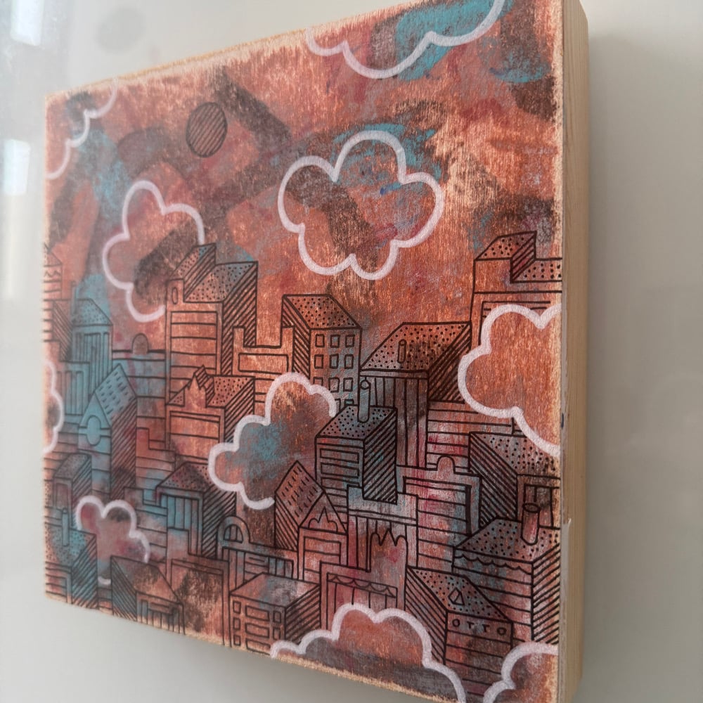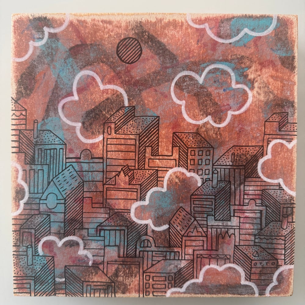 8”x8” wood panel. Acrylic and acrylic ink on wood. Ships free.
