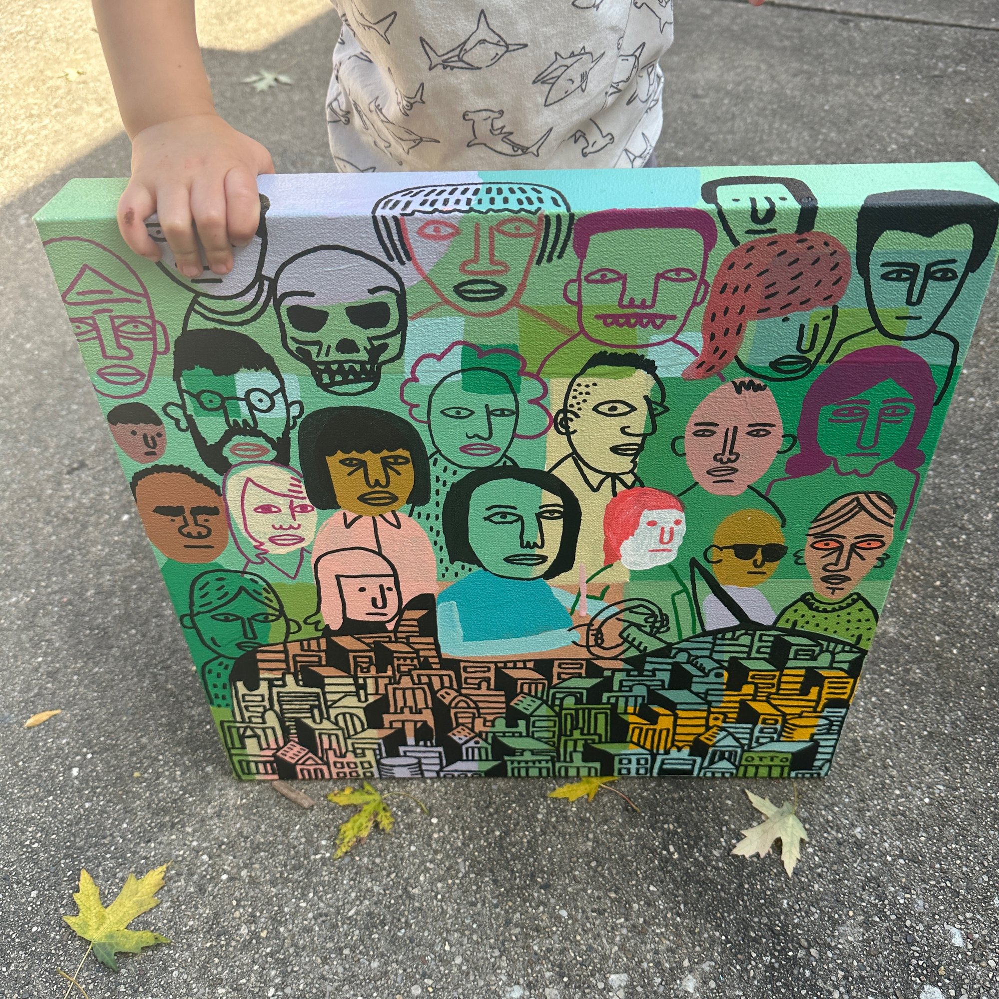 16"x16" canvas. Acrylic and acrylic ink on canvas. Ships free.