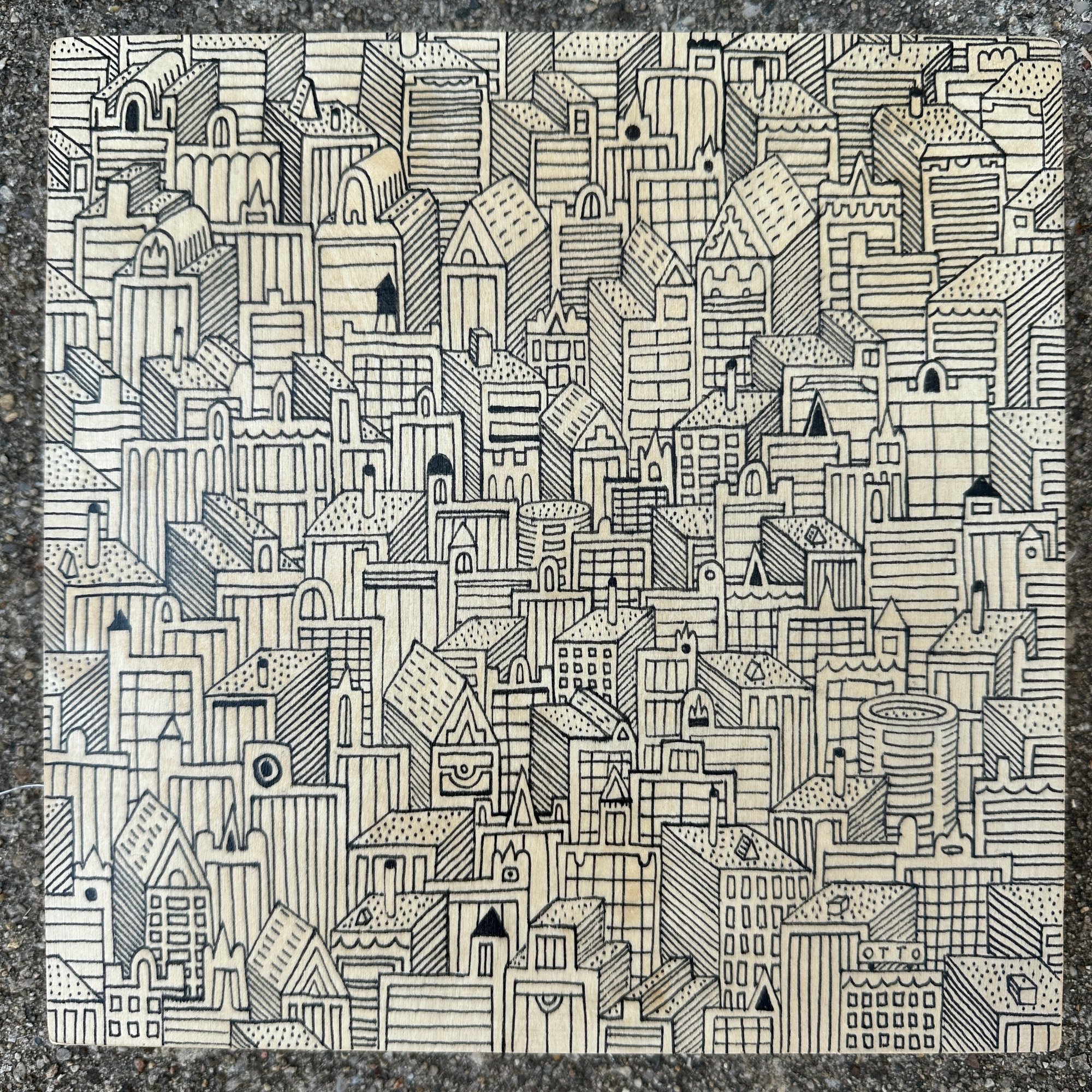 8"x8" wood panel. Ink on wood. Satin finish. Ships free.