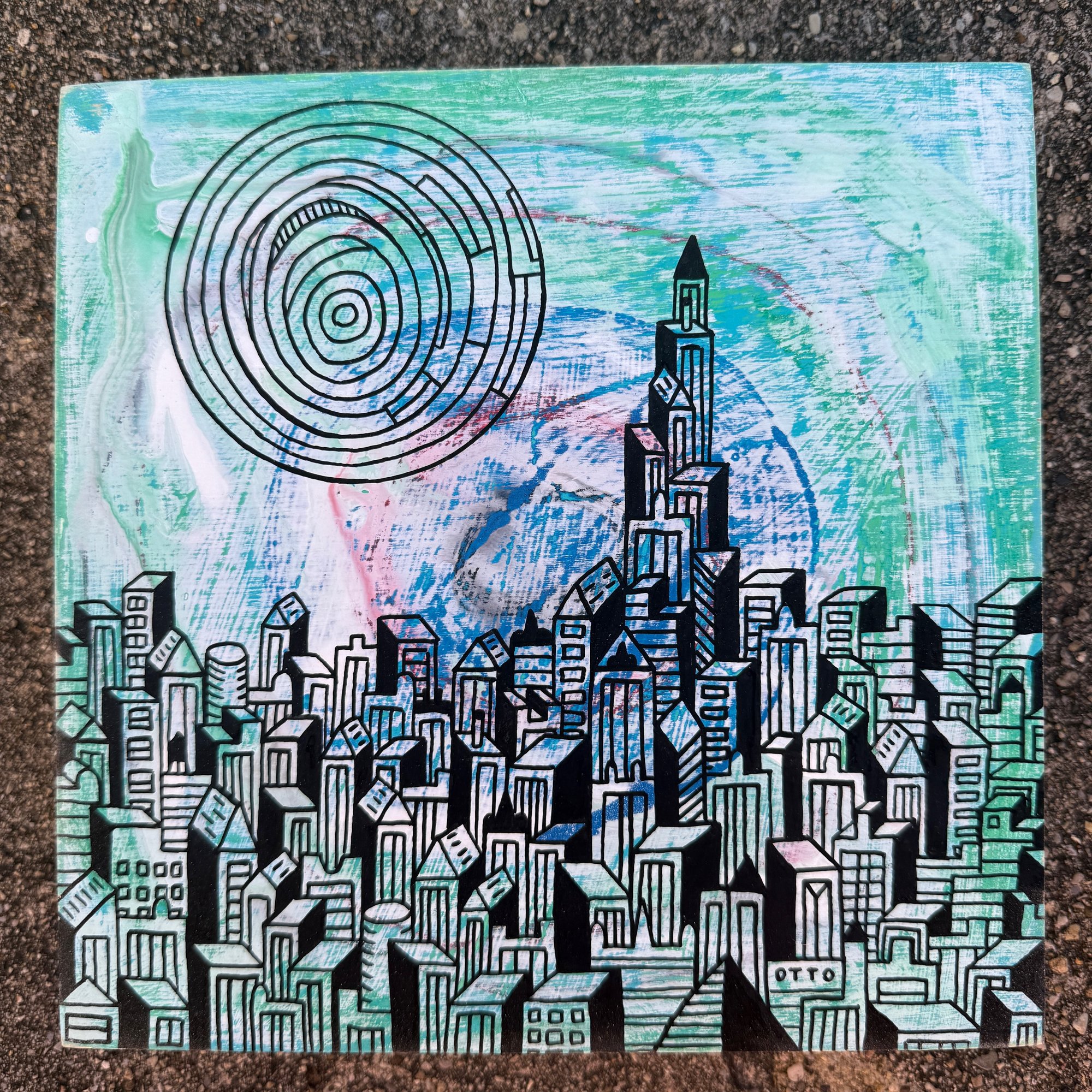 8"x8" wood panel. Acrylic ink on acrylic. Ships free.