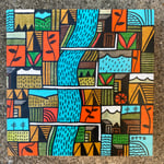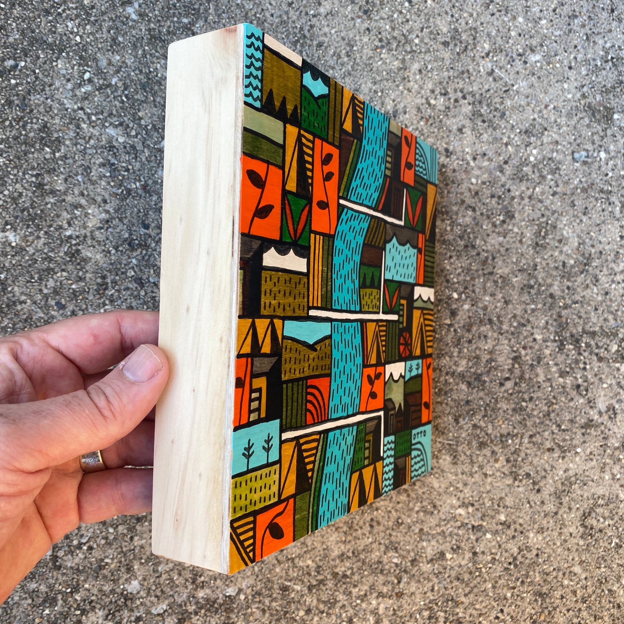 8"x8" wood panel. Acrylic, acrylic ink, and ink on wood. UV protectant and satin finish. Ships free.