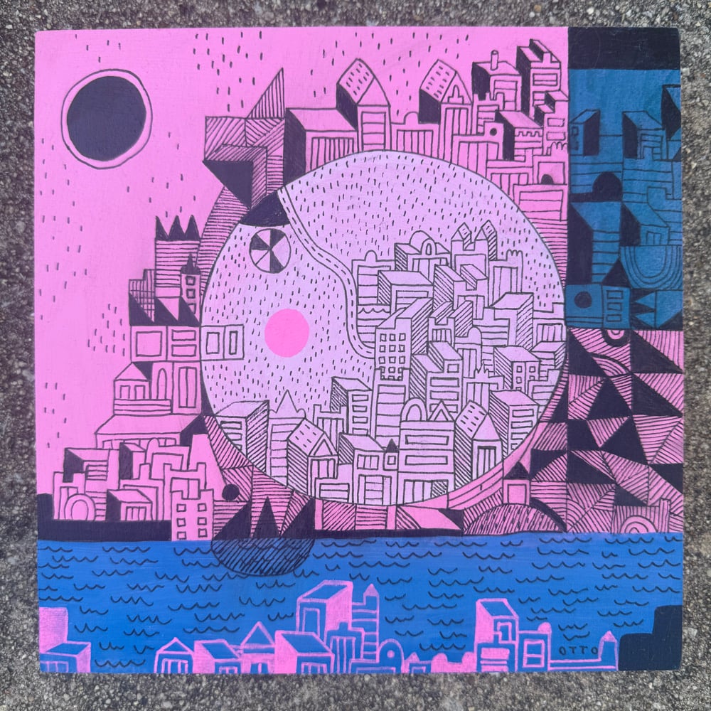 8”x8” acrylic and ink on wood panel. Matte finish. Ships free.