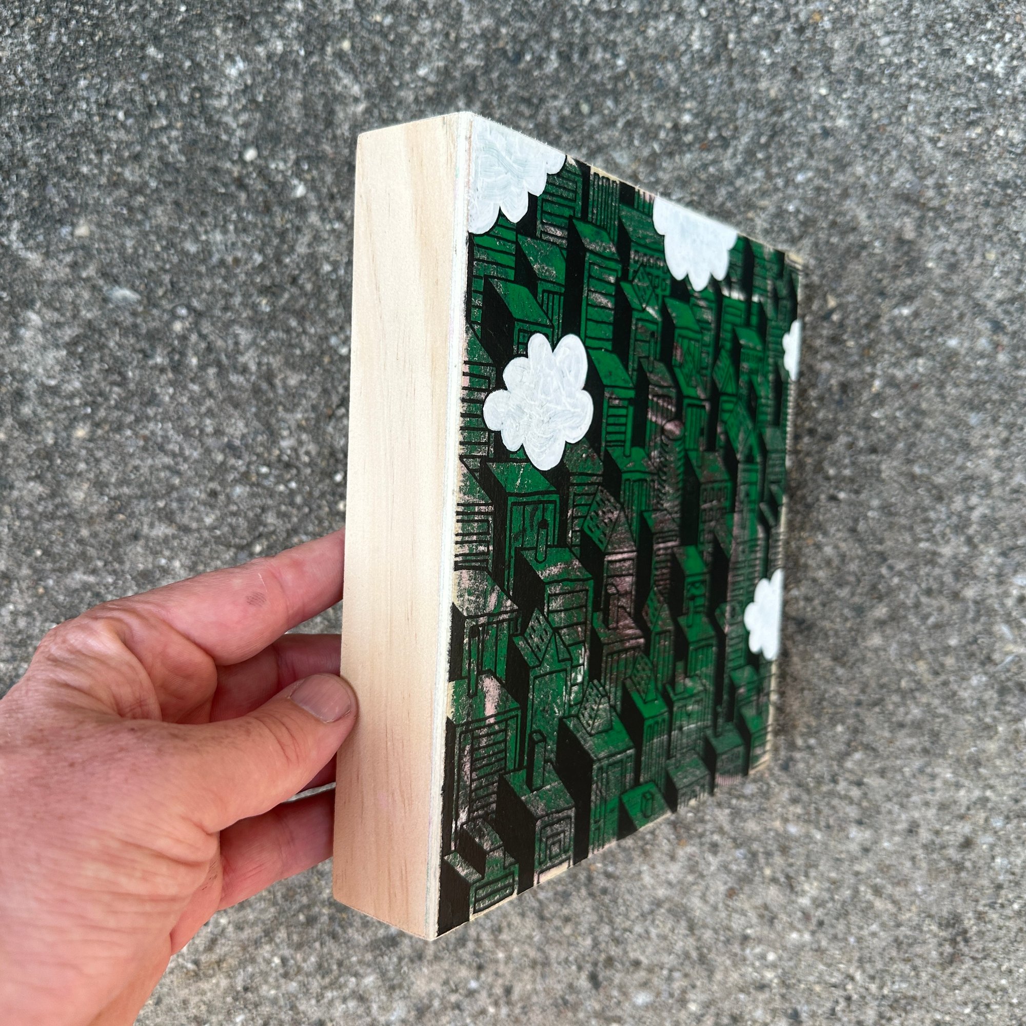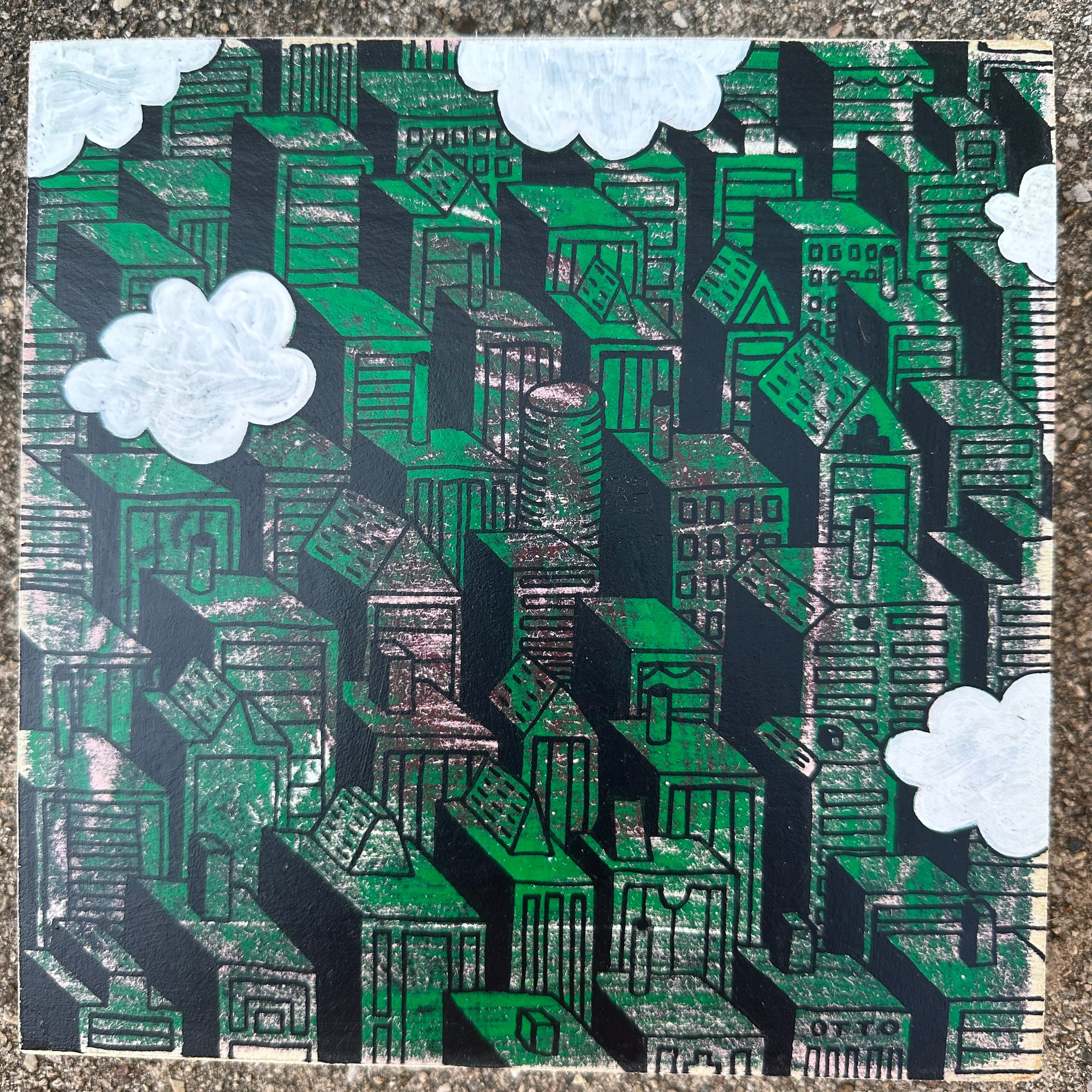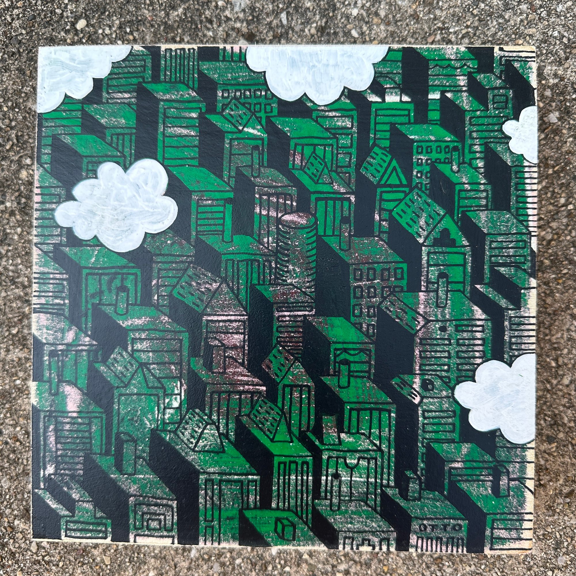 8"x8" wood panel. Acrylic layers sanded and acrylic ink on wood. UV protectant and matte finish. Ships free.