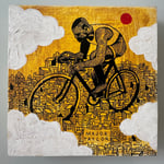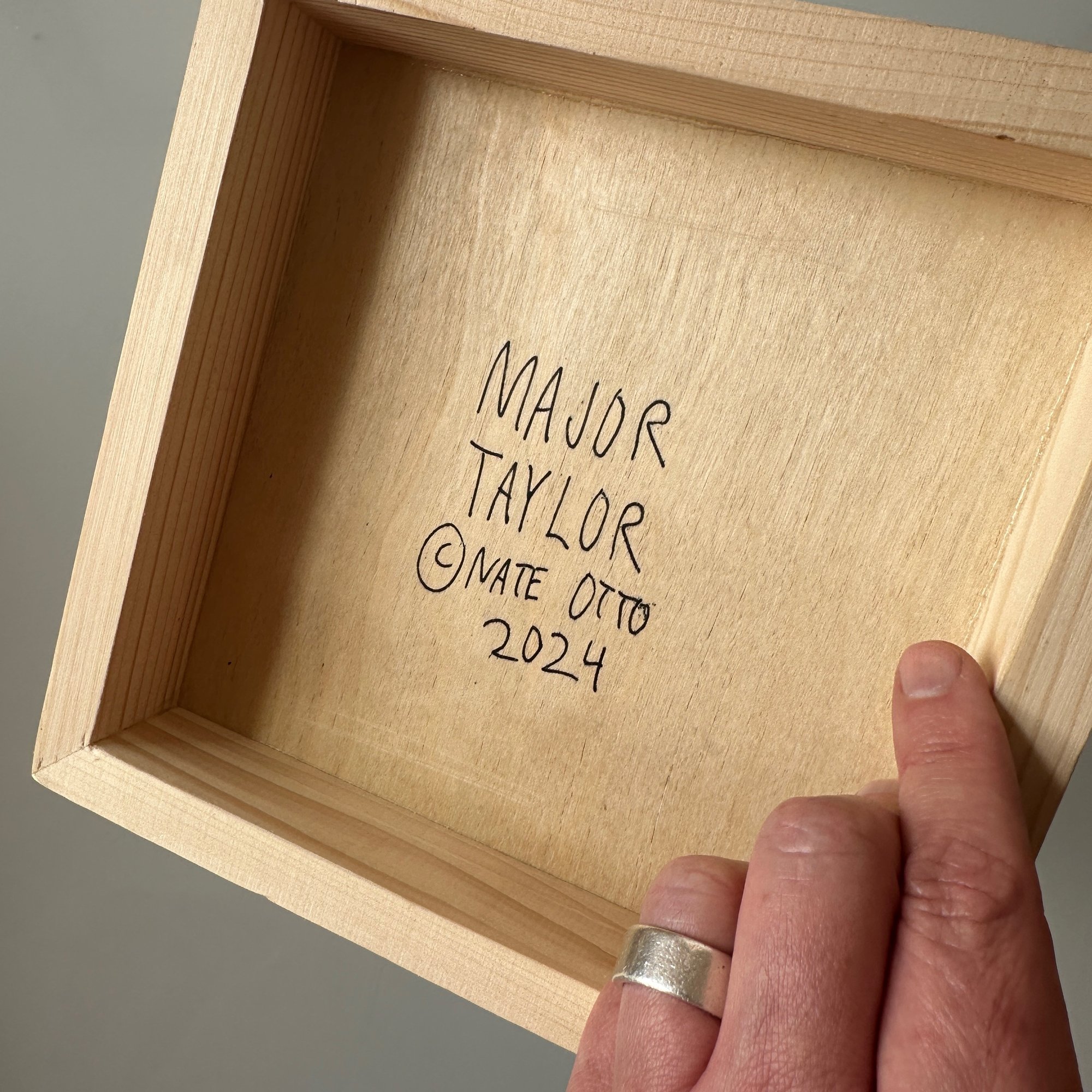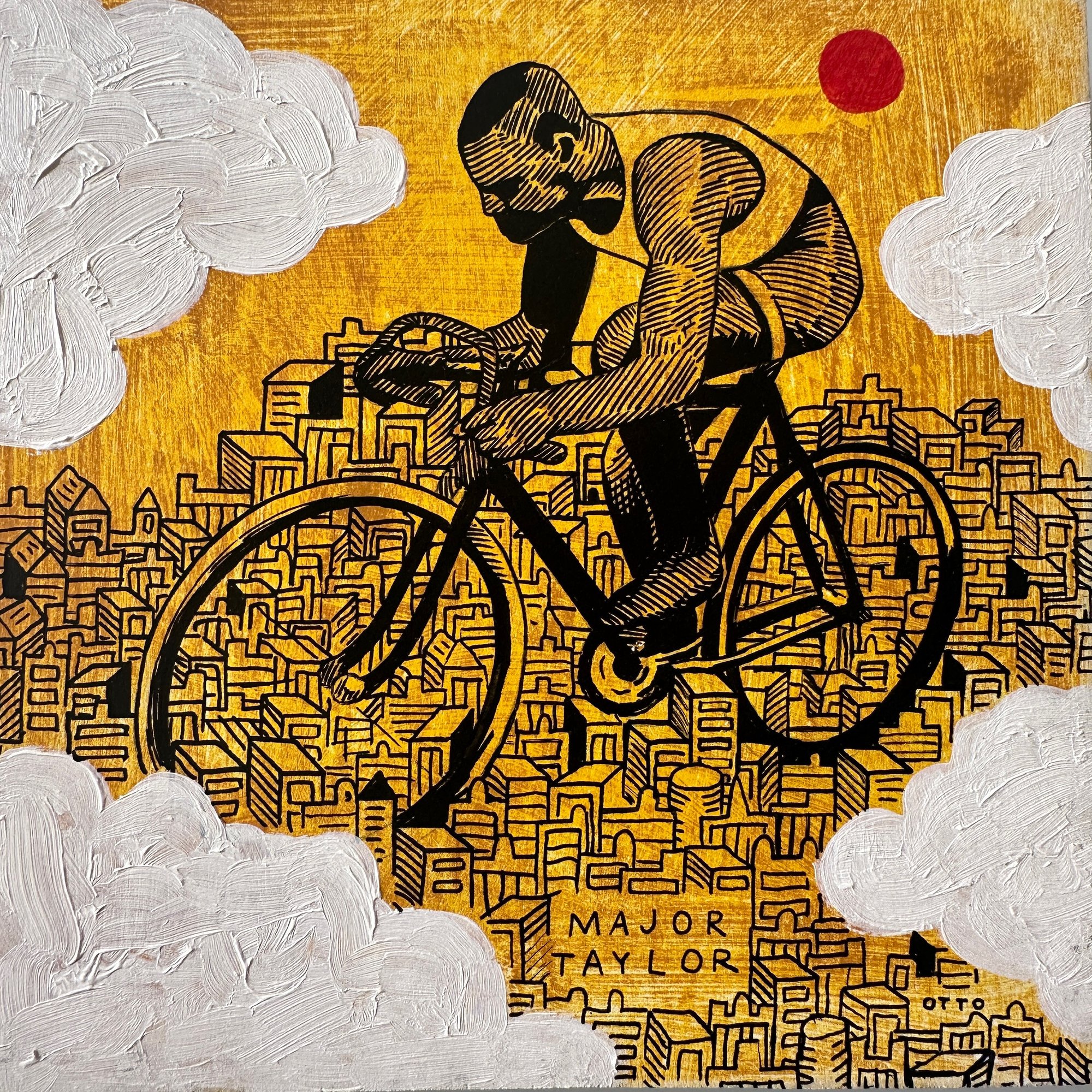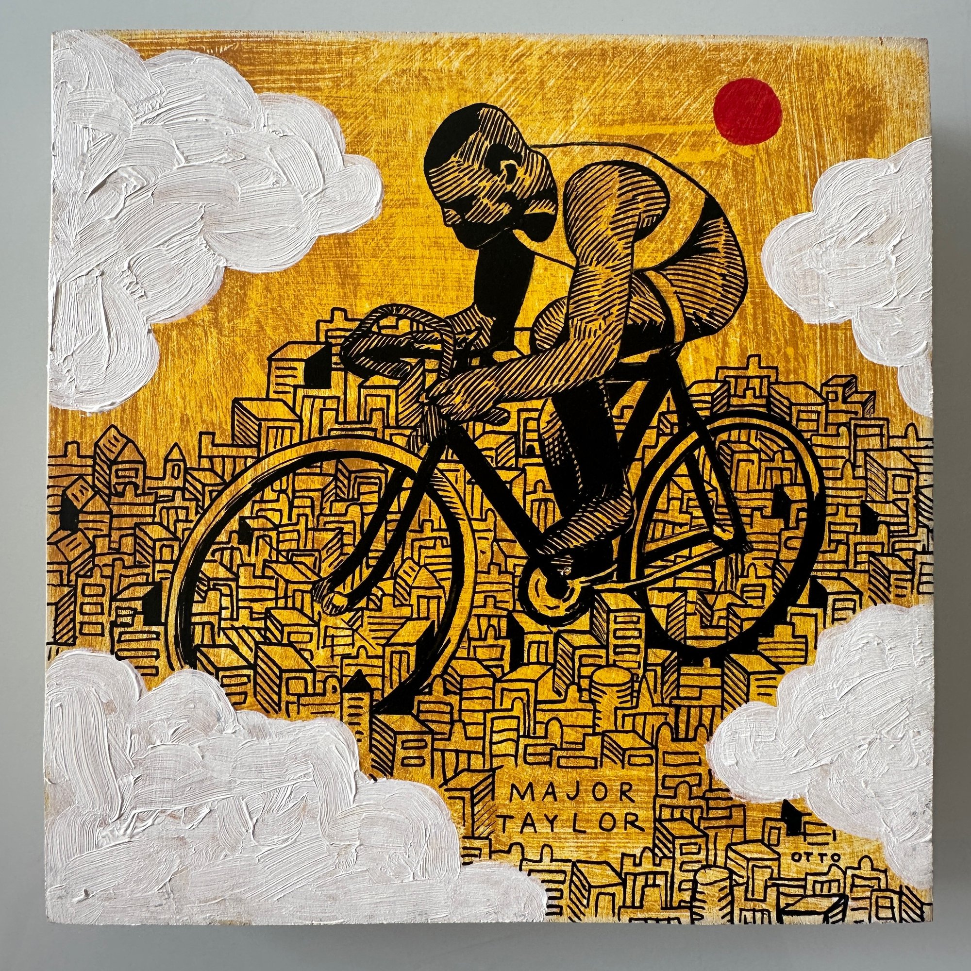 Major Taylor, an 8"x8" wood panel. Acrylic and acrylic ink on wood. Part of my series of portraits of influential Chicagoans. Ships free.