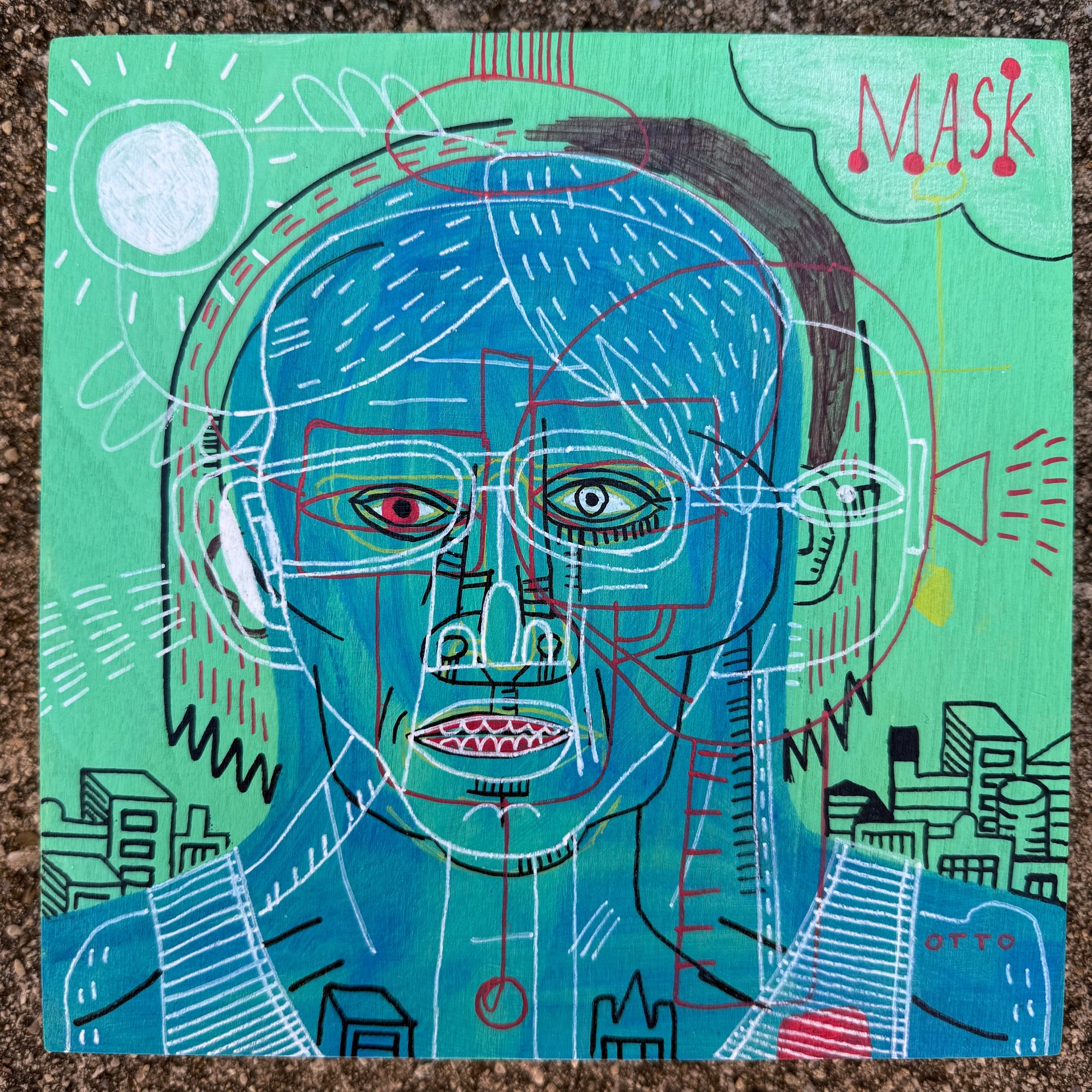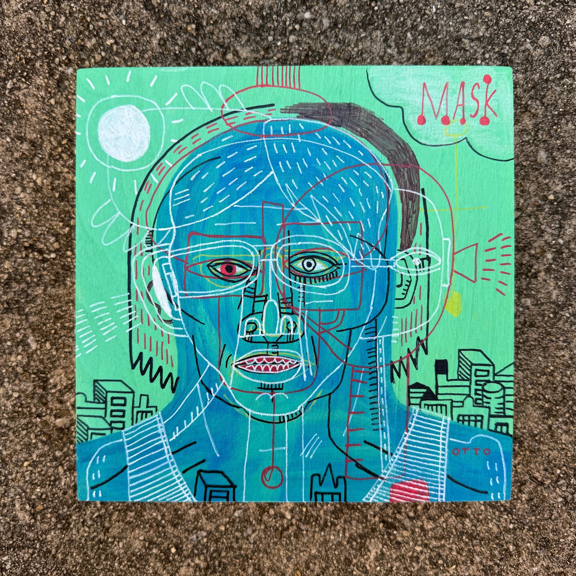 8"x8" wood panel. Acrylic, acrylic ink, and colored pencil on wood. Gloss finish. Ships free.