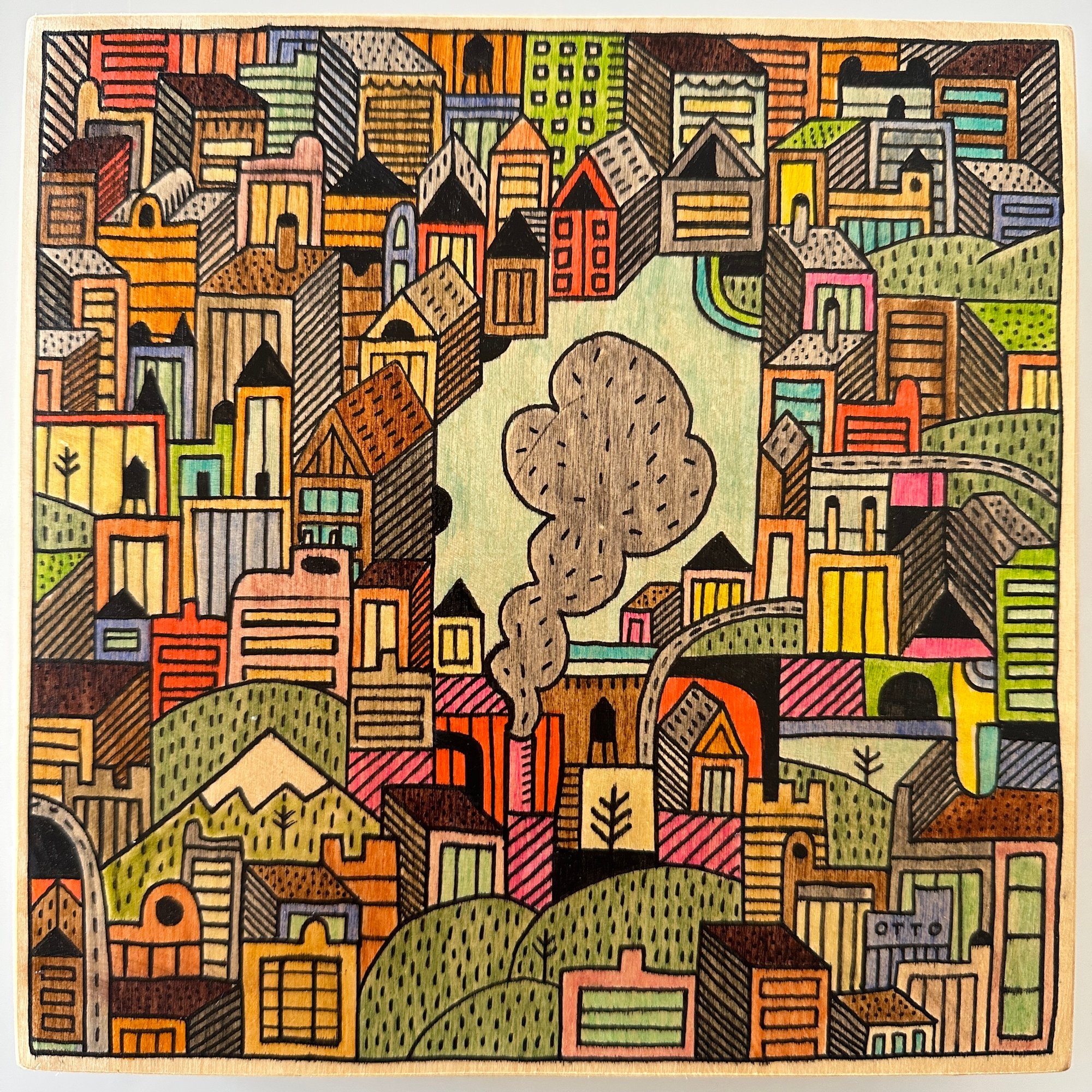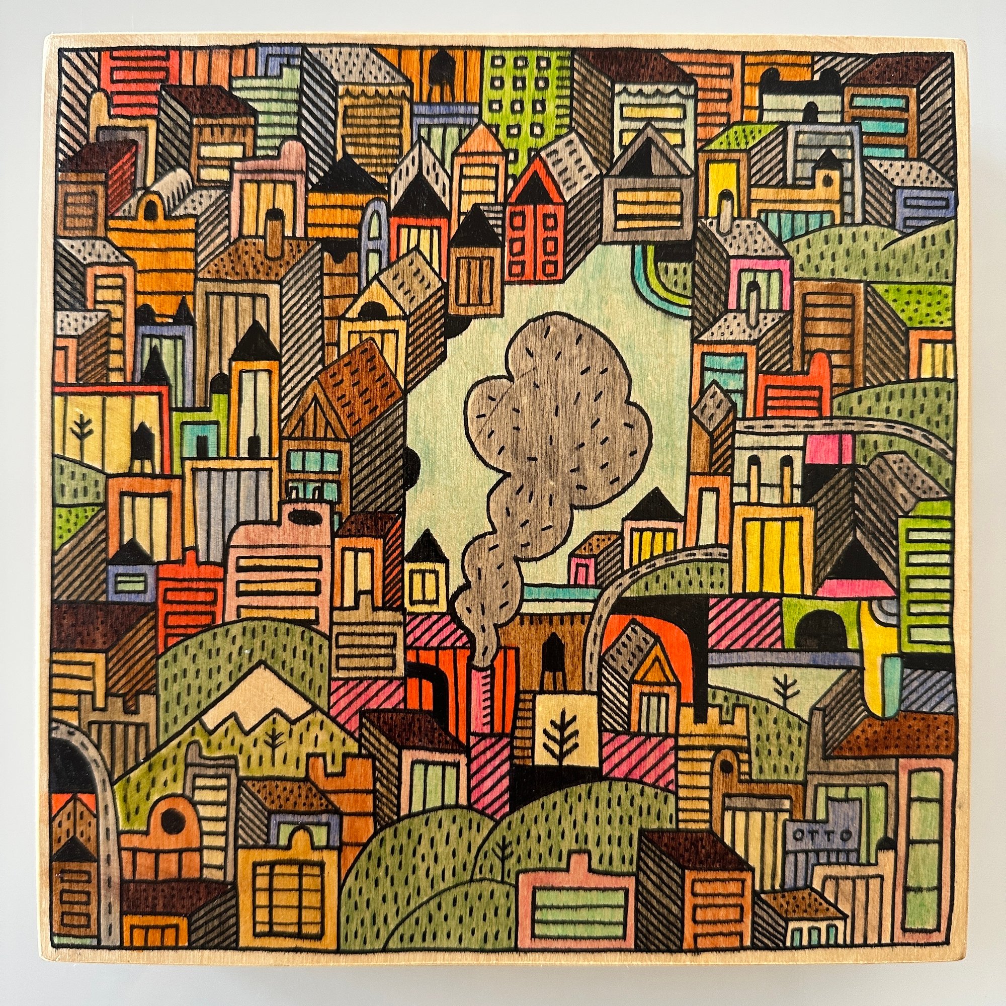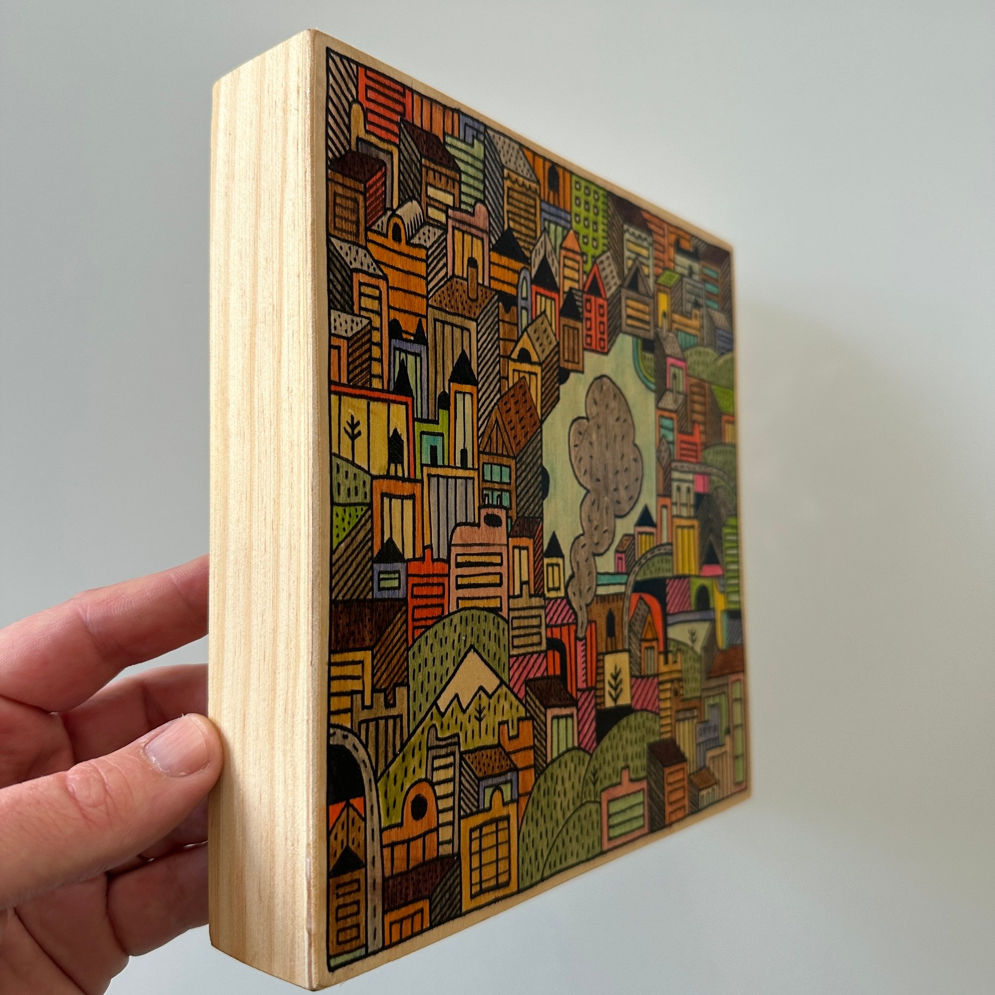 8"x8" wood panel. Ink and acrylic ink on wood. UV protectant and satin finish. Ships free.