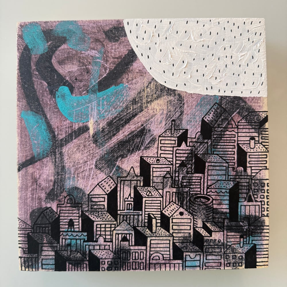 8”x8” wood panel. Acrylic and acrylic ink. Ready to hang. Ships free.