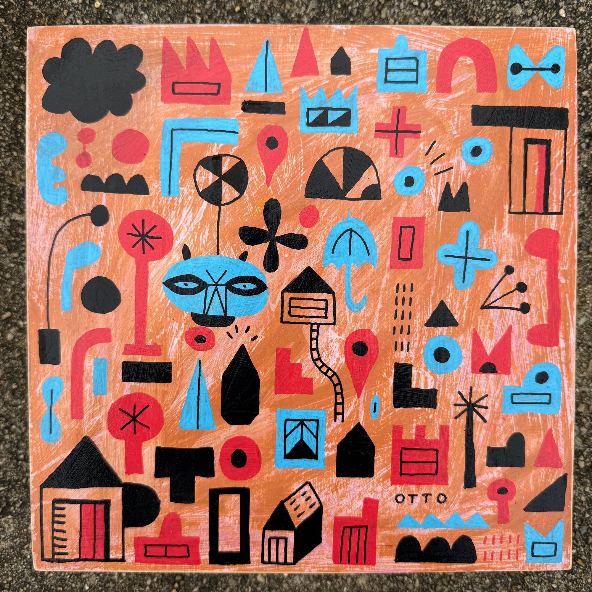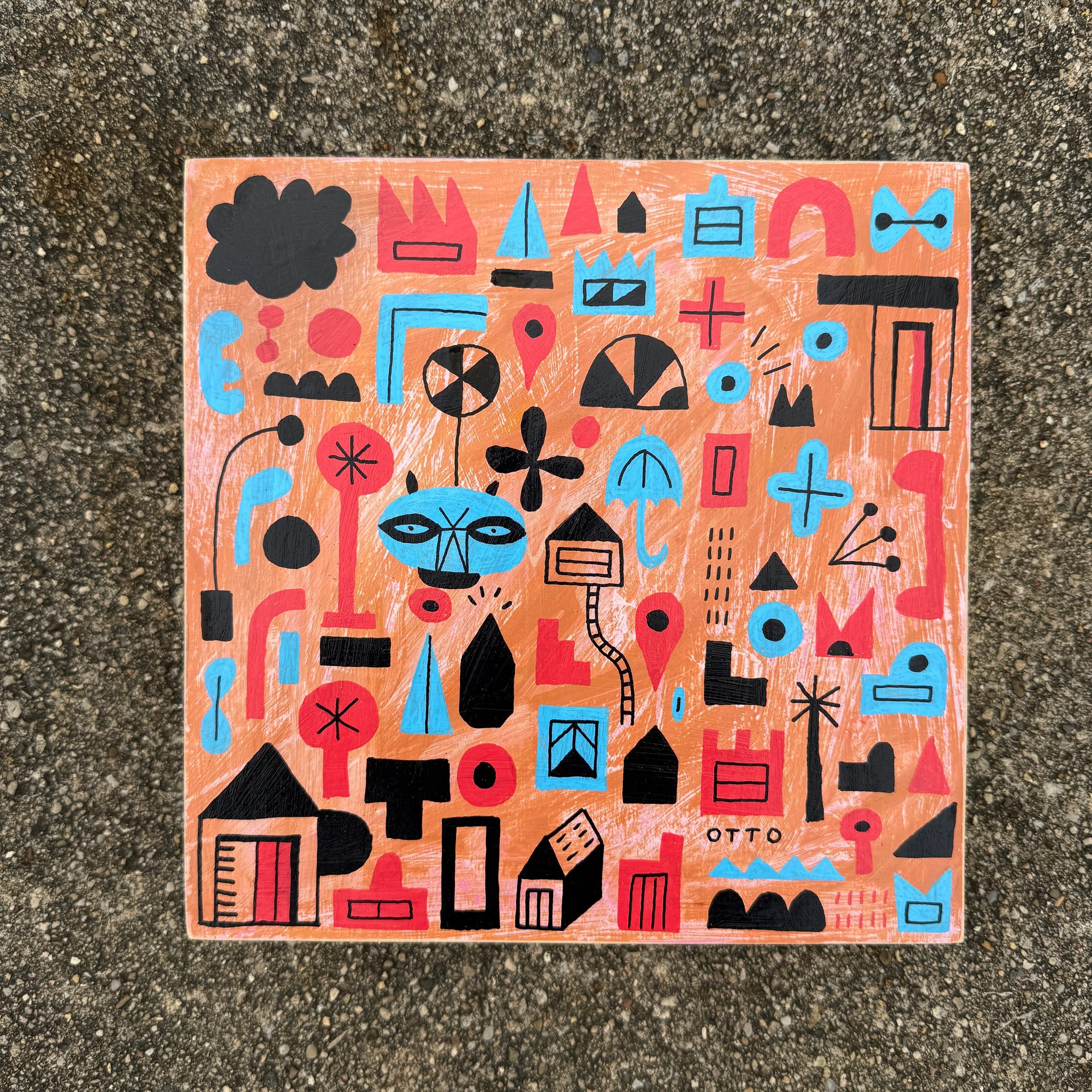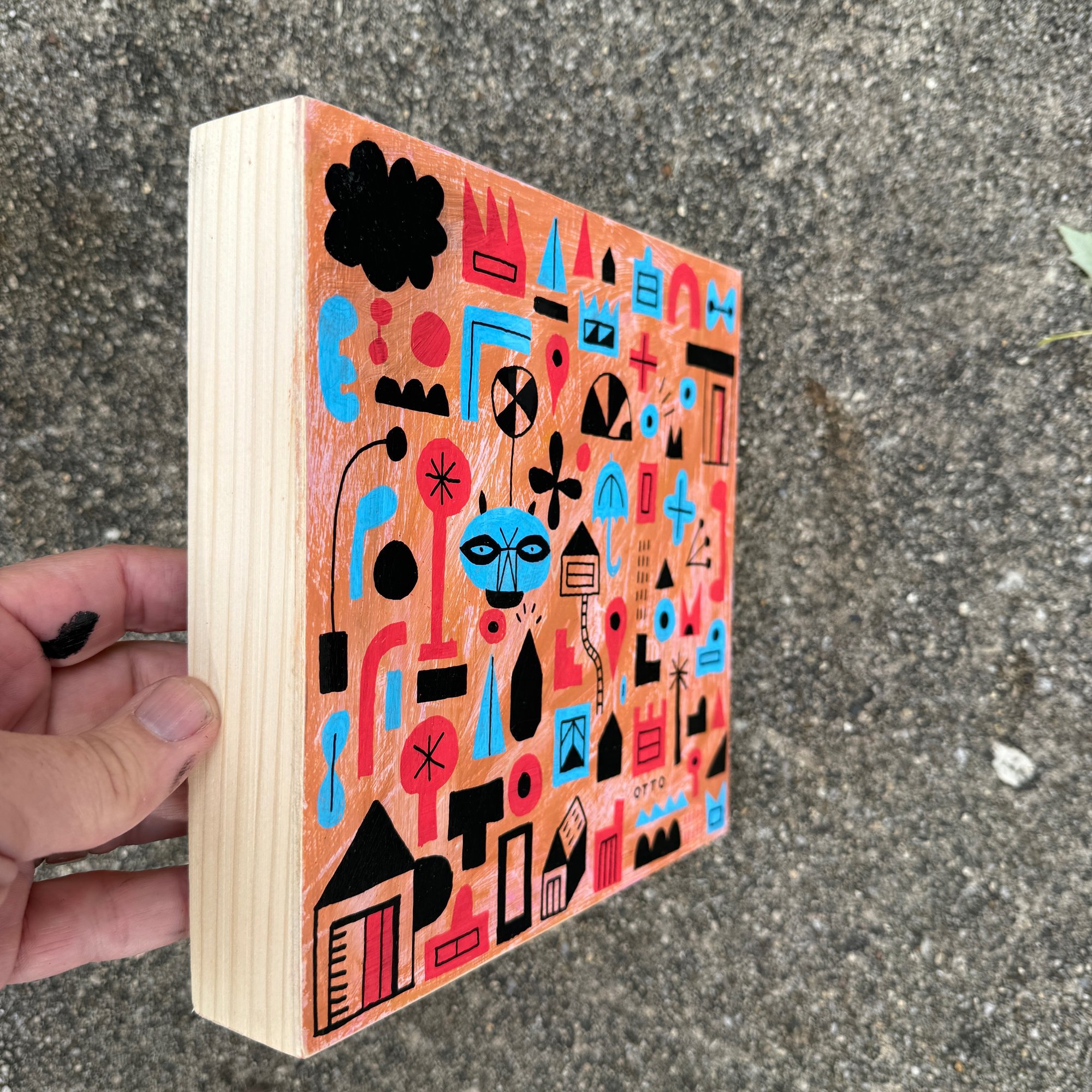 8"x8" wood panel. Acrylic layers sanded and acrylic ink on top with gloss finish. Ships free.