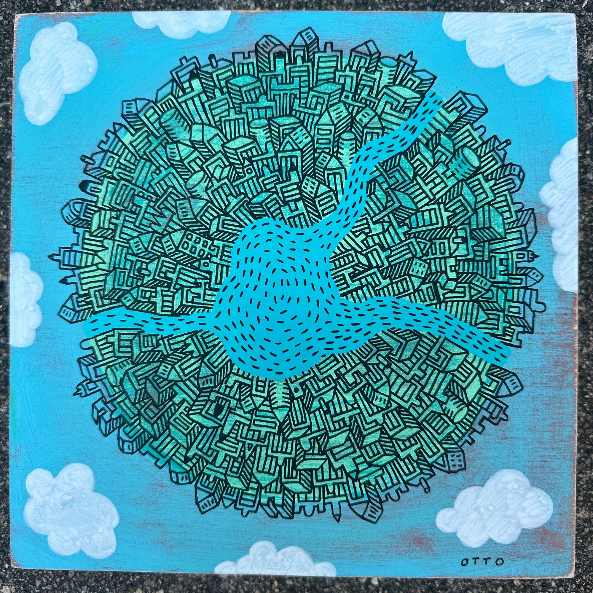 8"x8" wooden panel. Acrylic and acrylic ink. Sanded layers and sides. Ships free.