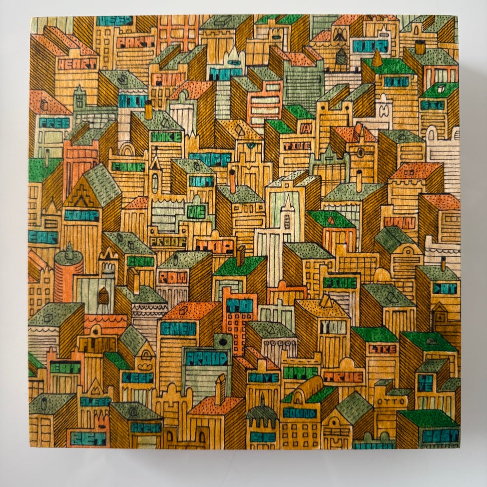 8”x8” wood panel. ink on wood. UV protectant and matte finish. ships free.