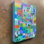 14"x11" acrylic and several types of paint marker on custom made canvas. Ships free.