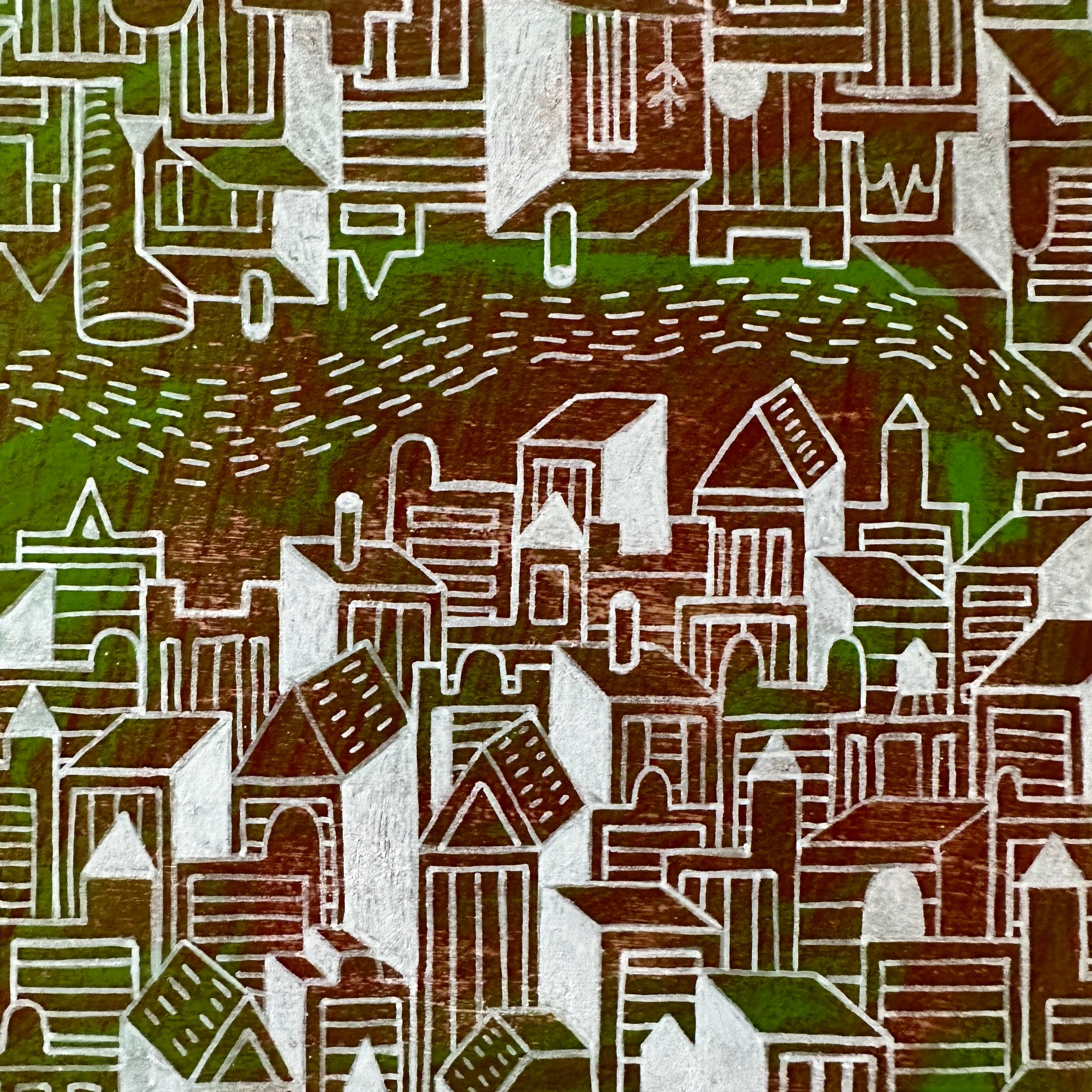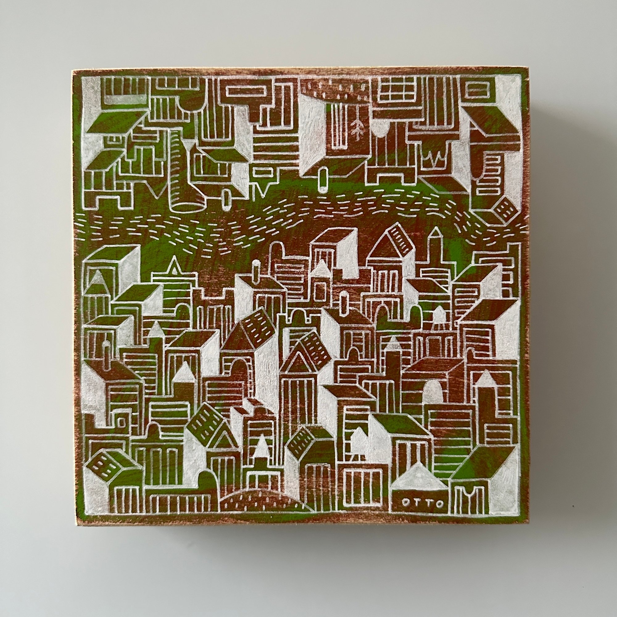 8"x8" wood panel. Acrylic and acrylic ink on wood. Matte finish. Ships free.