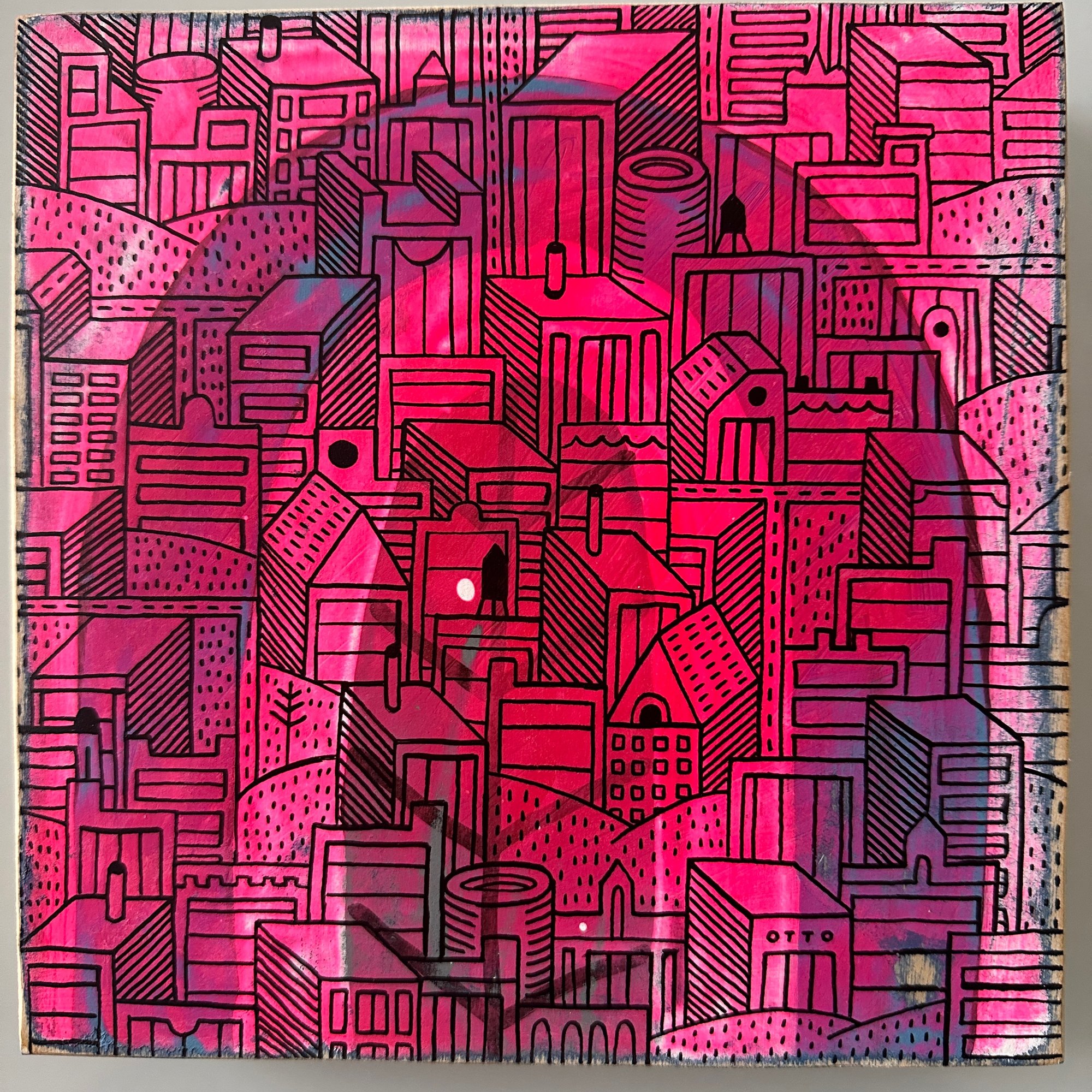 8"x8" wood panel. Acrylic and acrylic ink on wood. Matte finish. Ships free.