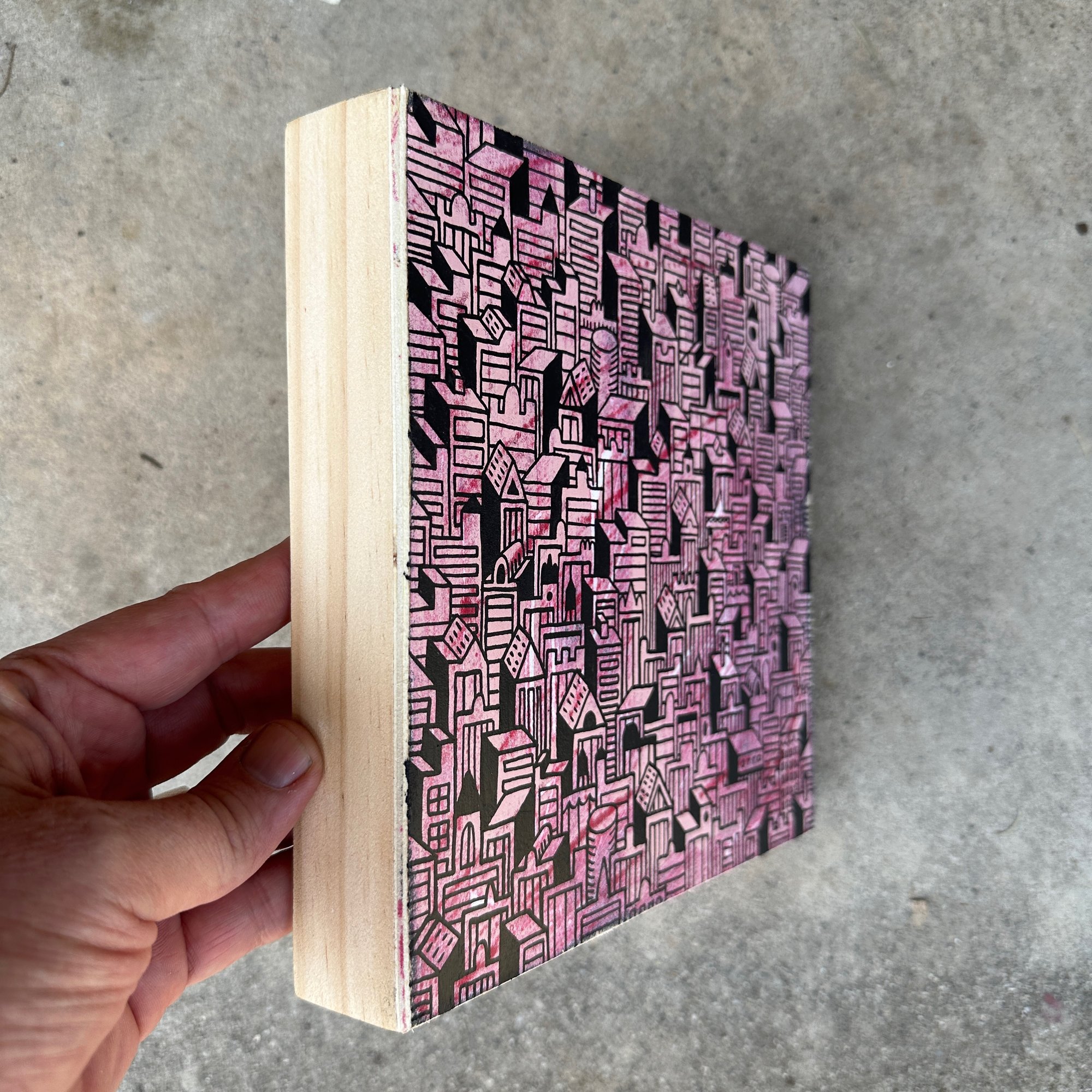 An 8"x8" wood panel. Acrylic layers and acrylic ink lines. Matte finish. Ships free.