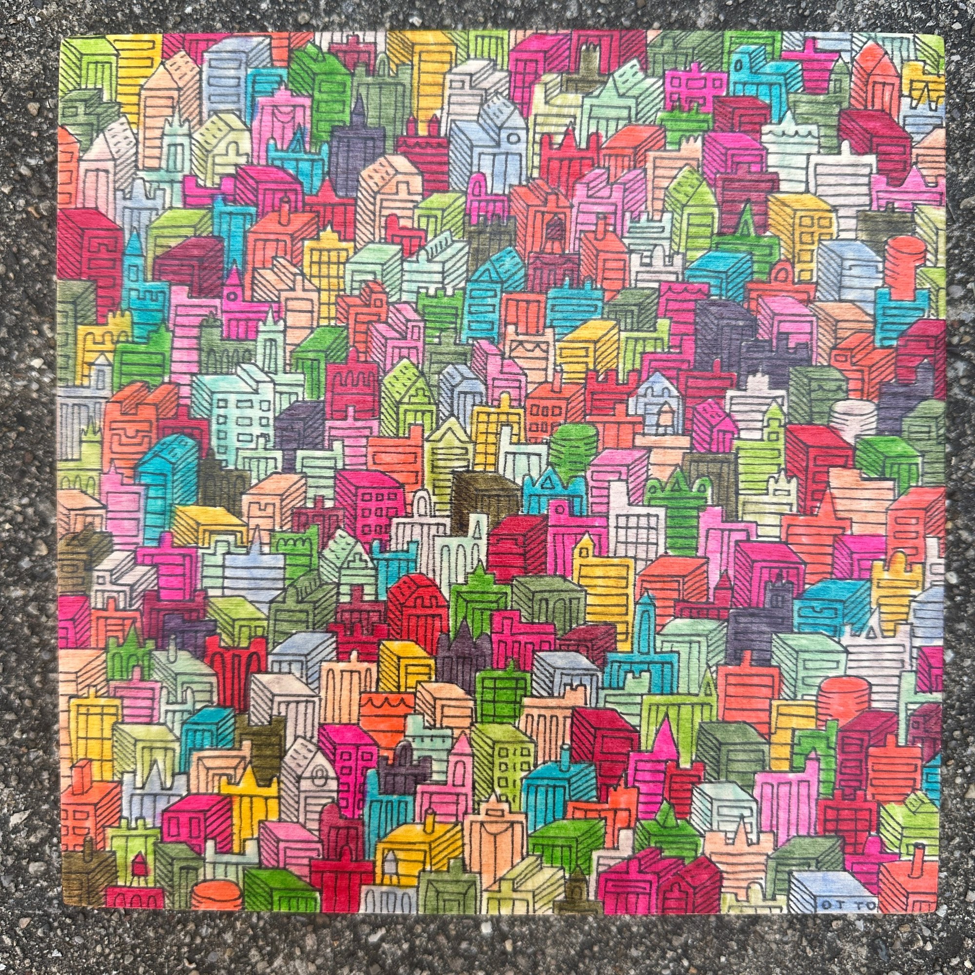 8"x8" wood panel. Acrylic ink and ink on wood. Uv protectant and matte finish. Ships free.