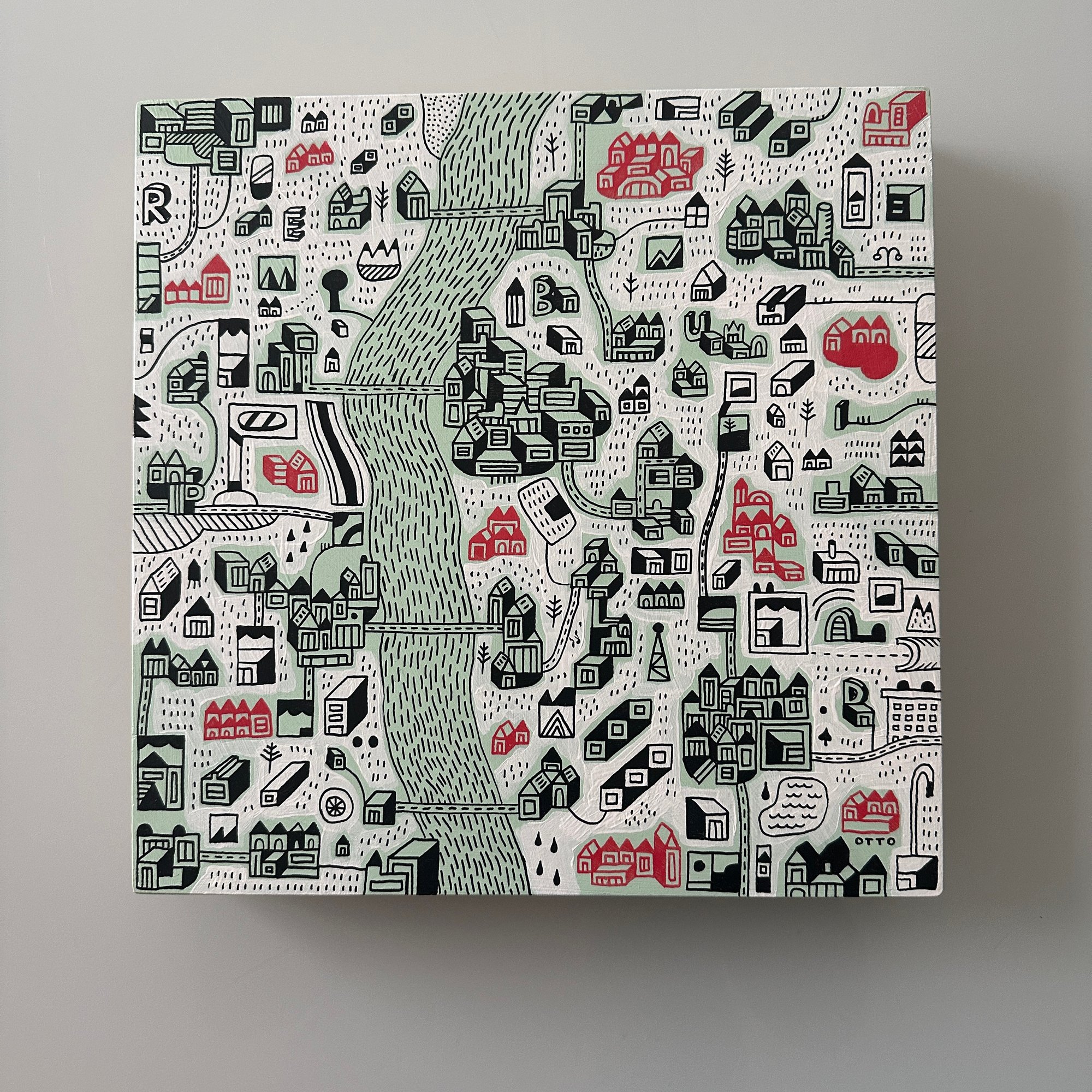 12"x12" custom made wood panel. Acrylic and acrylic ink on wood. Matte finish. Ships free.