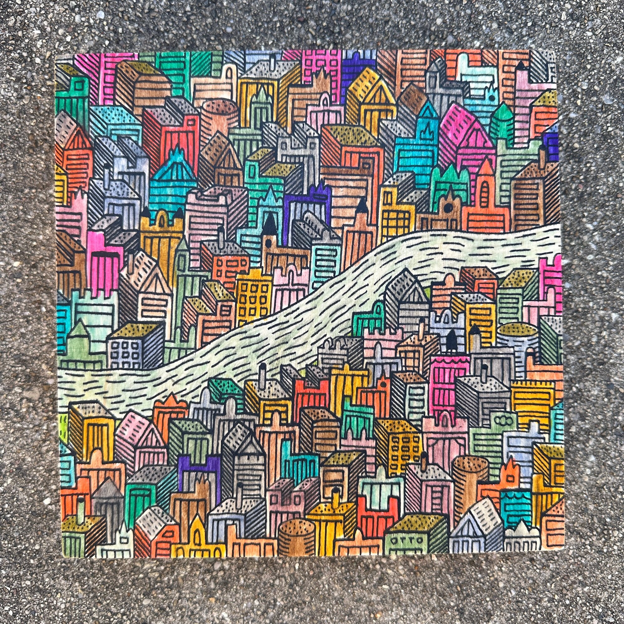 8"x8" wood panel. Ink and acrylic ink on wood. UV protectant and matte finish. Ships free.