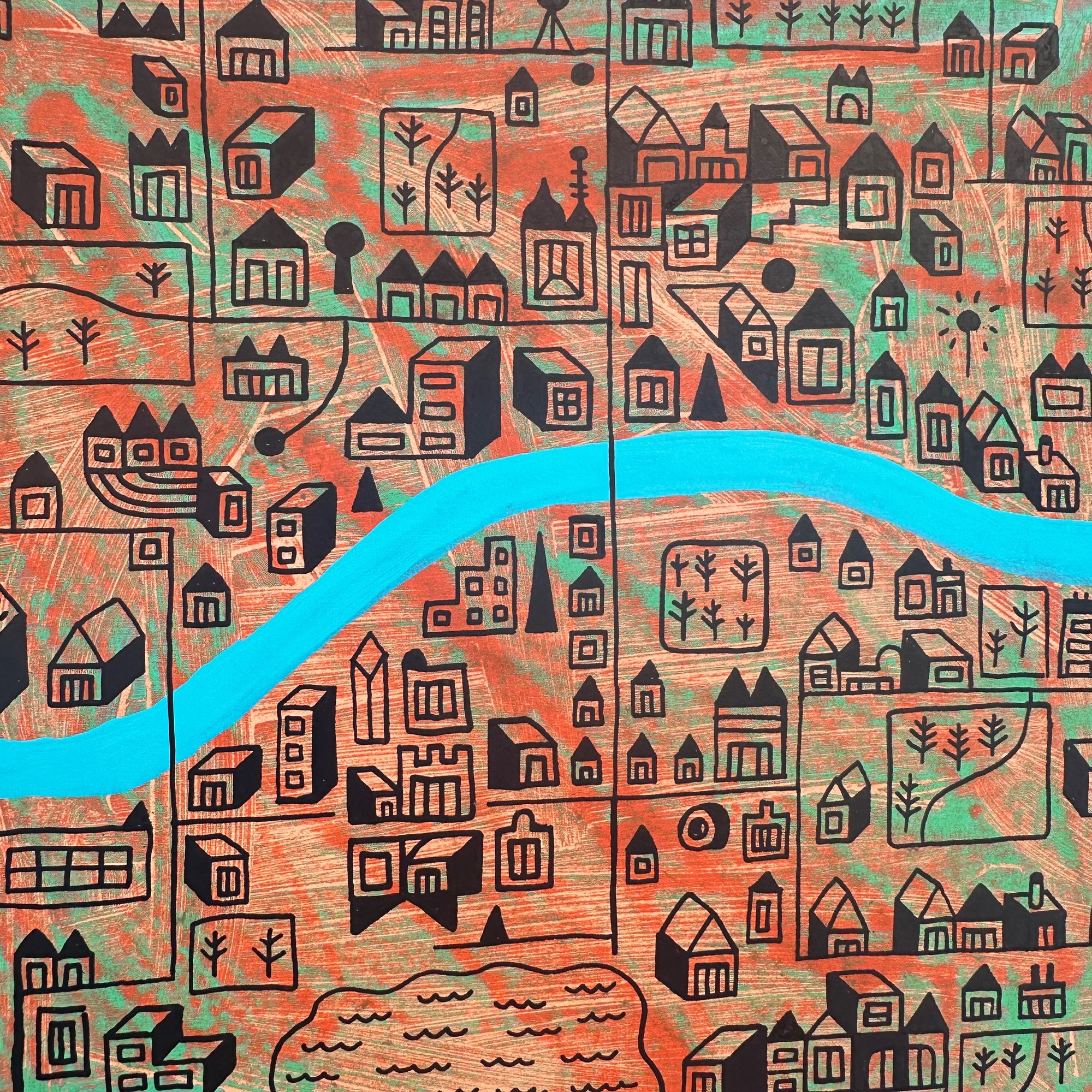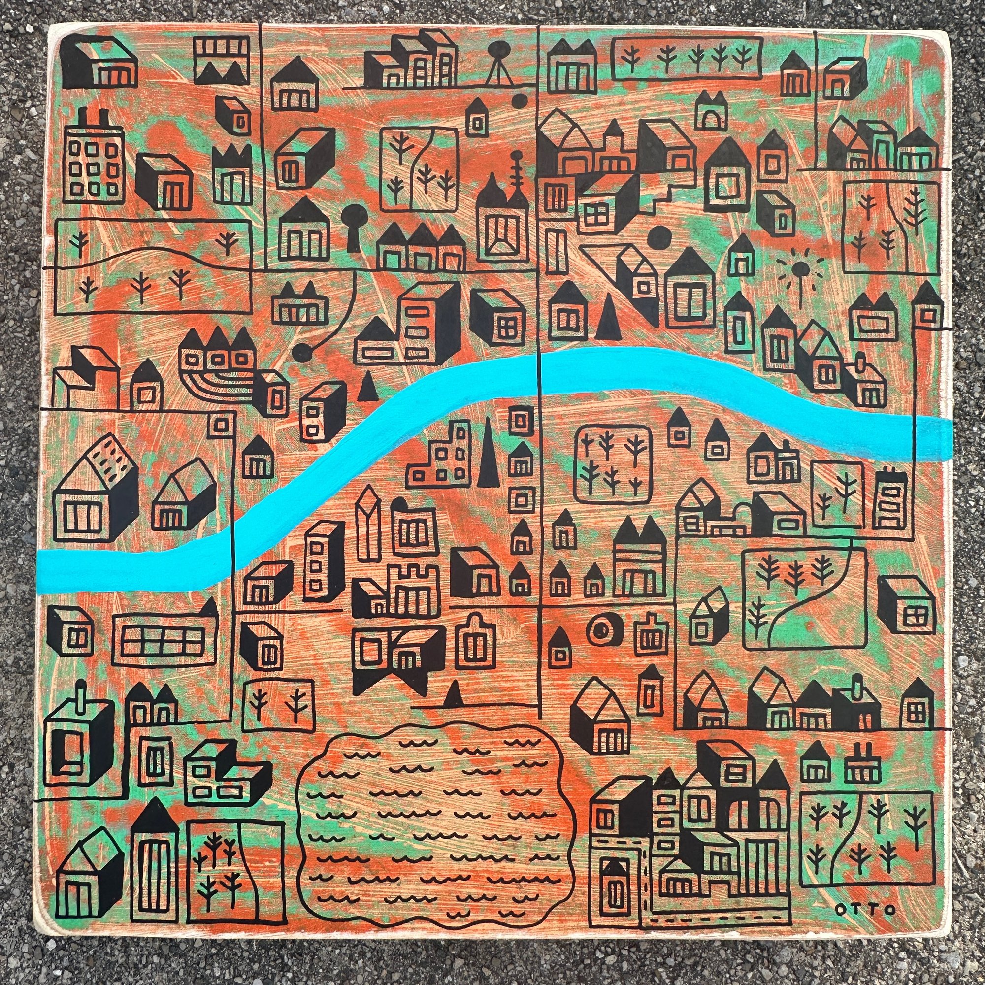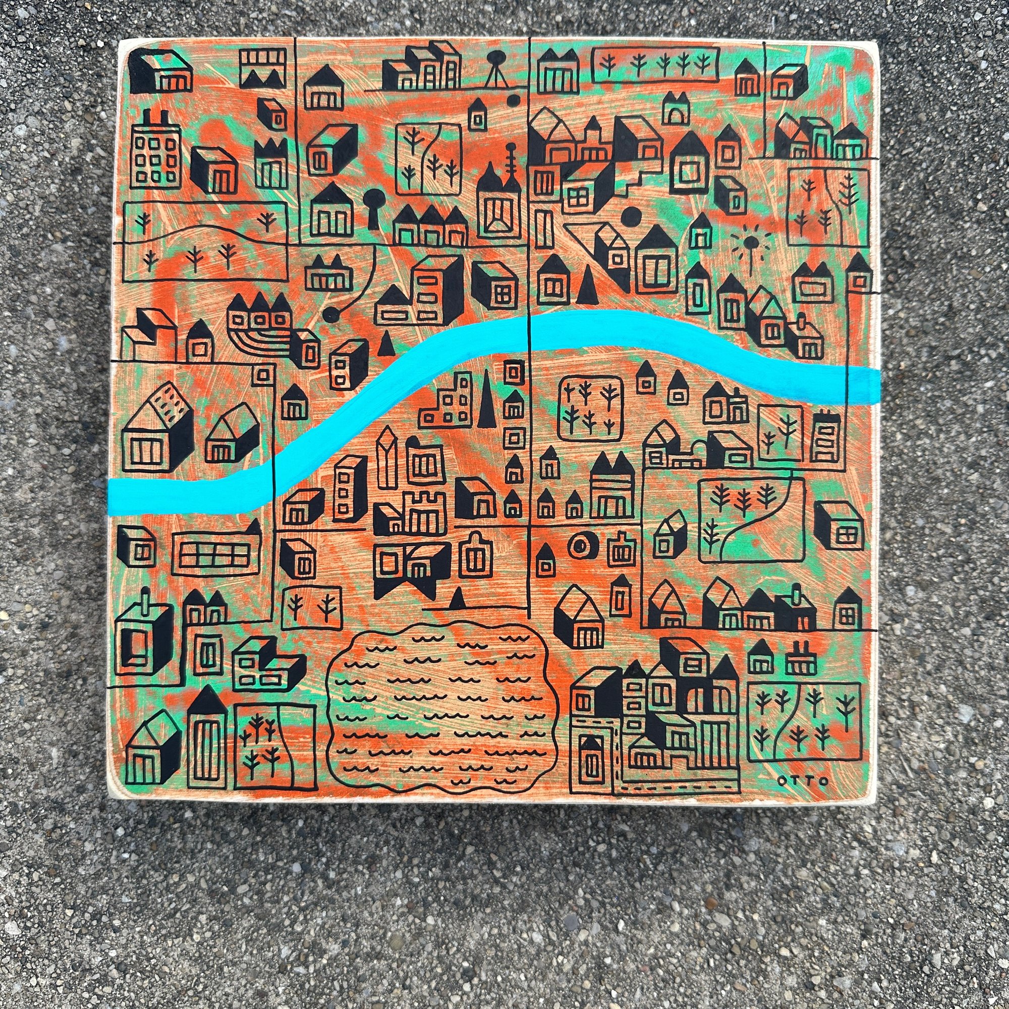 8"x8" panel. Acrylic layers sanded and acrylic ink and acrylic on top. Ships free.