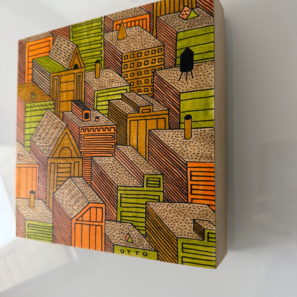 8”x8” wood panel. ink and acrylic ink on wood. uv protectant and matte finish. ships free.