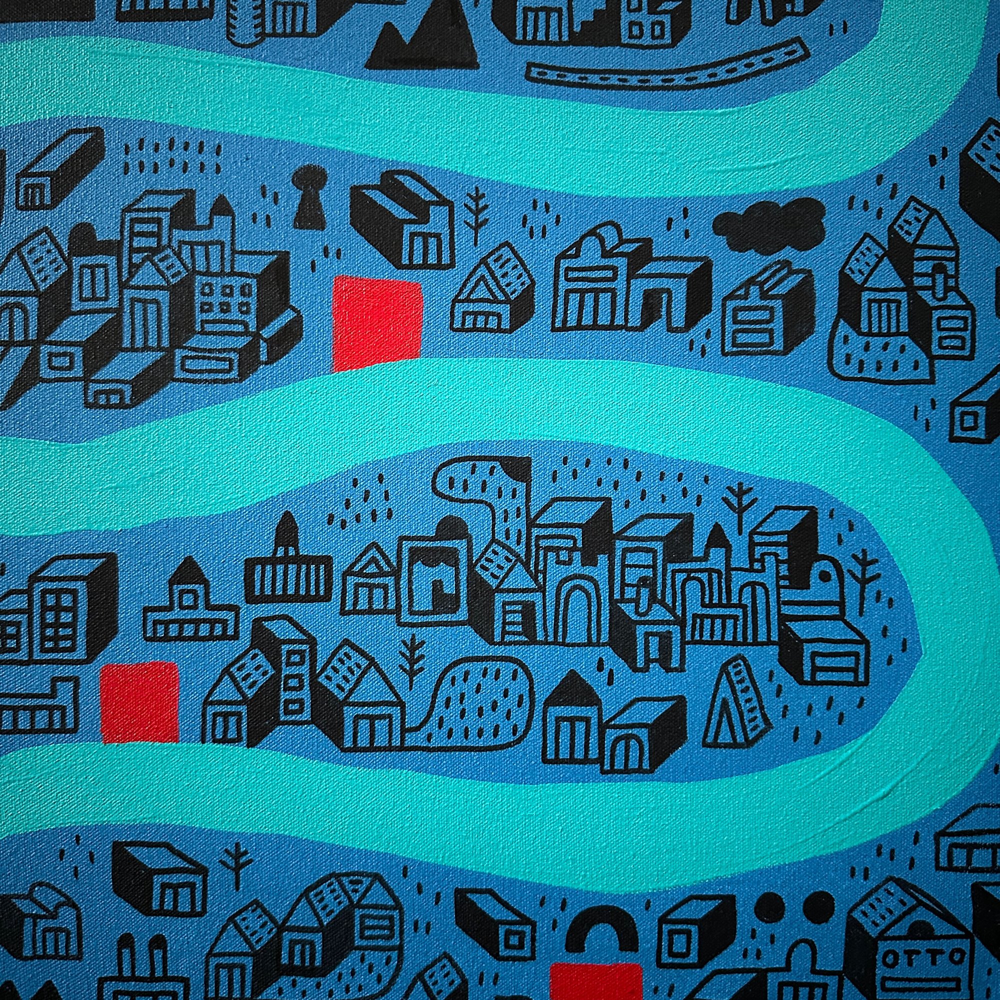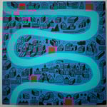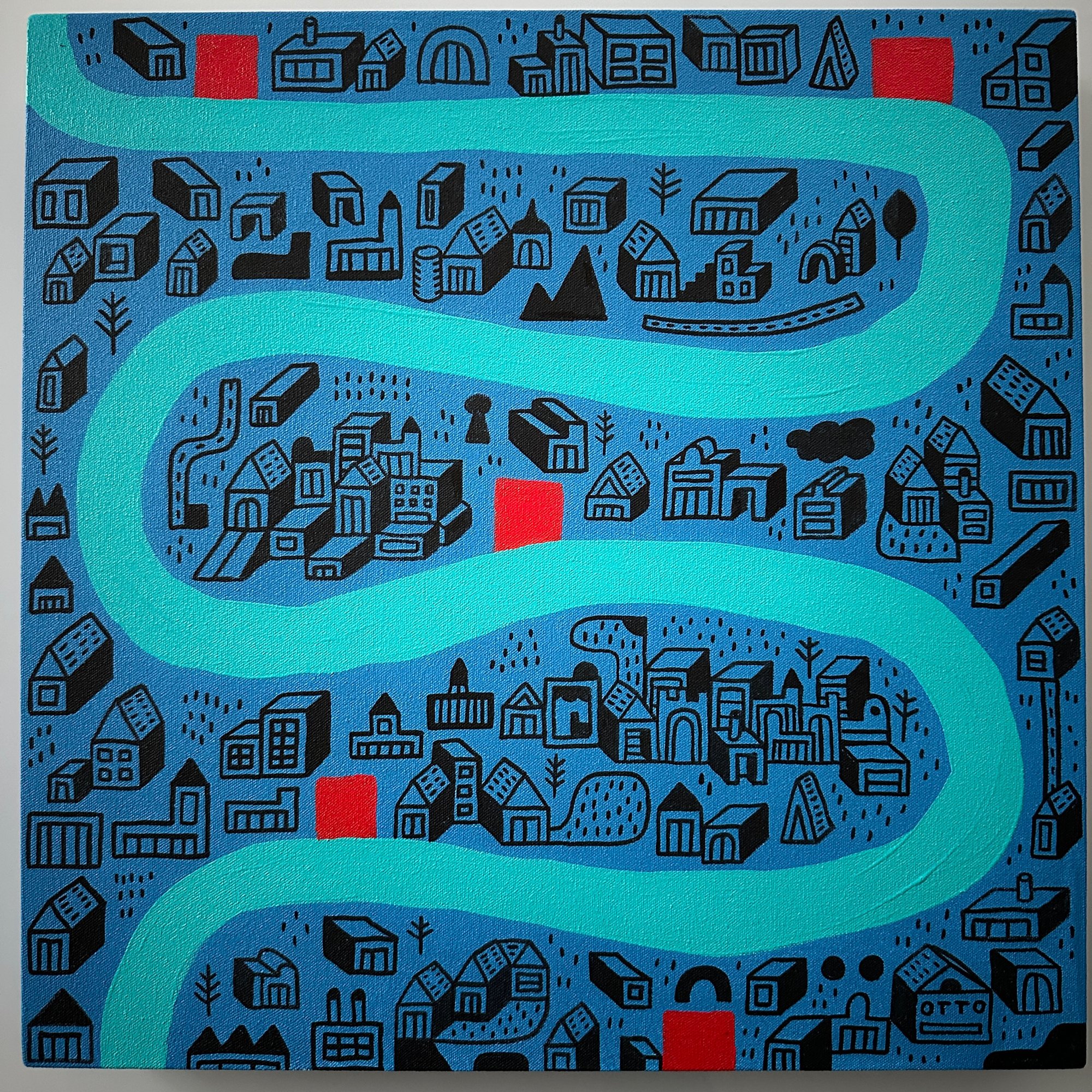 18"x18" custom made canvas. Acrylic and acrylic ink on canvas. I really like this painting. I'll put a wire on the back before I ship it. Ships free.