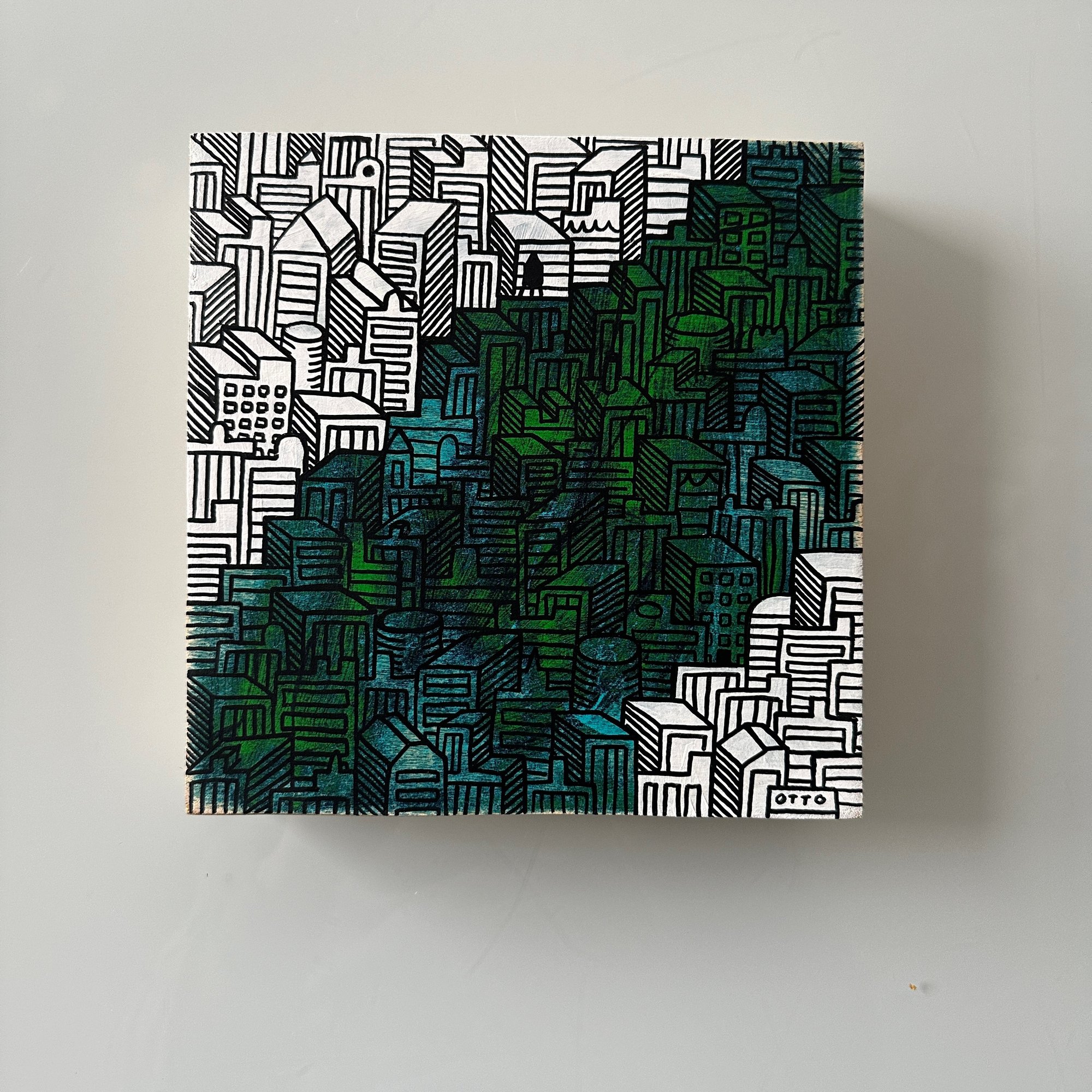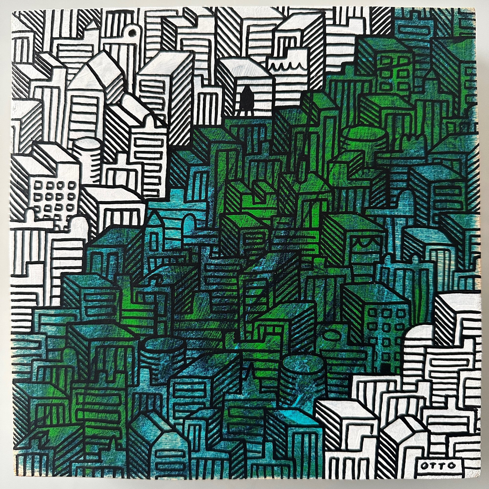 8"x8" wood panel. Acrylic and acrylic ink on wood. Sanded layers. Matte finish. Ships free.