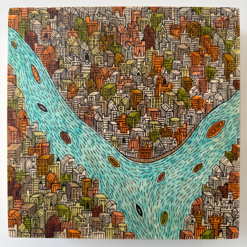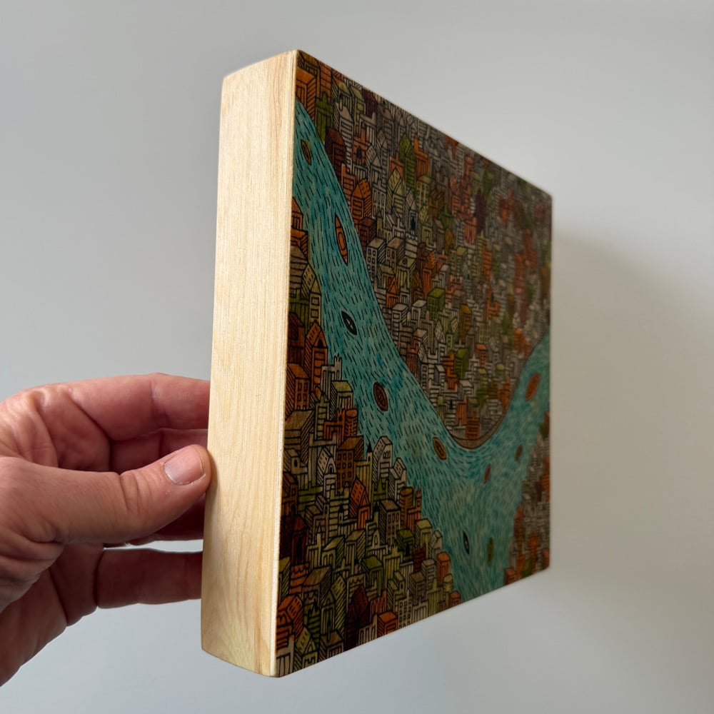8”x8” wood panel. ink on wood. UV protectant and matte finish. ships free.