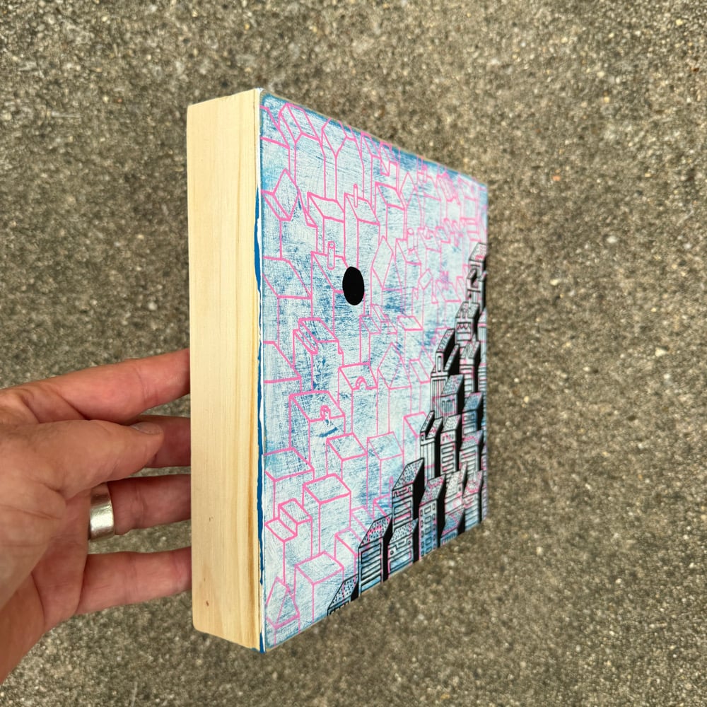 8”x8” acrylic and acrylic ink on wood panel. Matt’s finish. sanded layers. ships free.