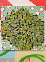 12”x12” acrylic, ink, and acrylic ink on wood panel. Coated with matte finish. Ships free.