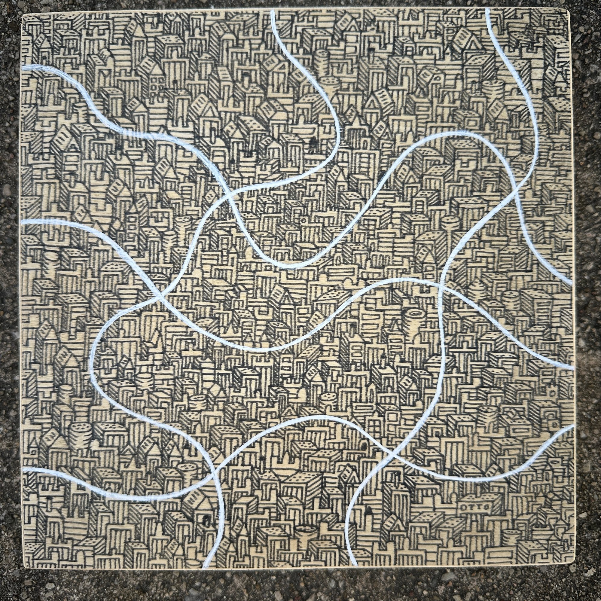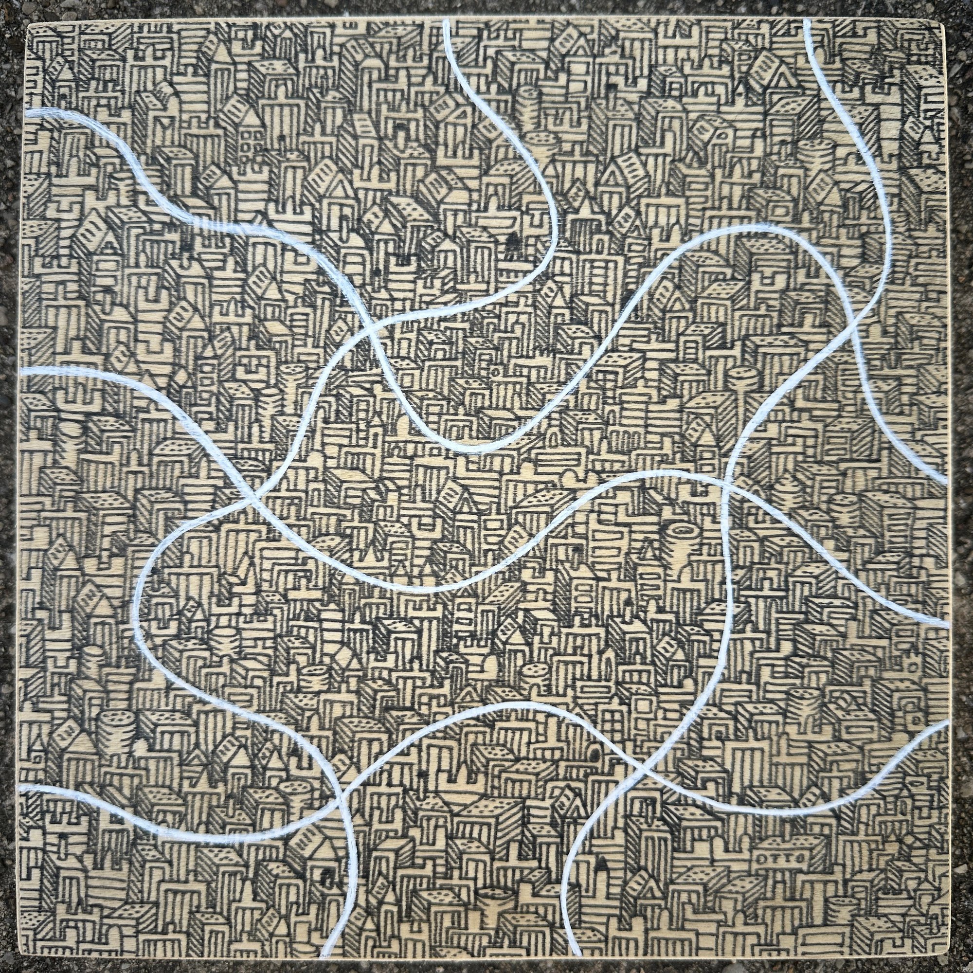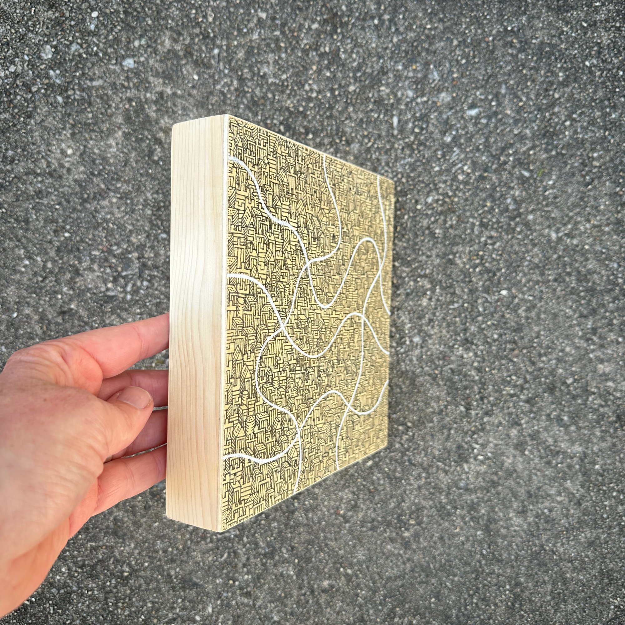 8"x8" wood panel. Ink and acrylic ink on wood. Matte finish. Updated on 04/25. Ships free.