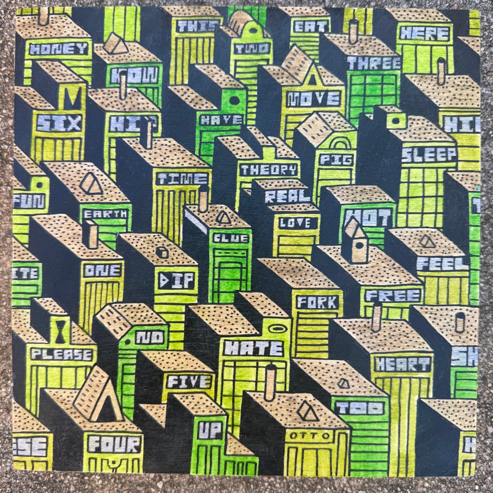 8”x8” wood panel. Ink and acrylic ink on wood. Gloss finish. Ready to hang. Ships free.
